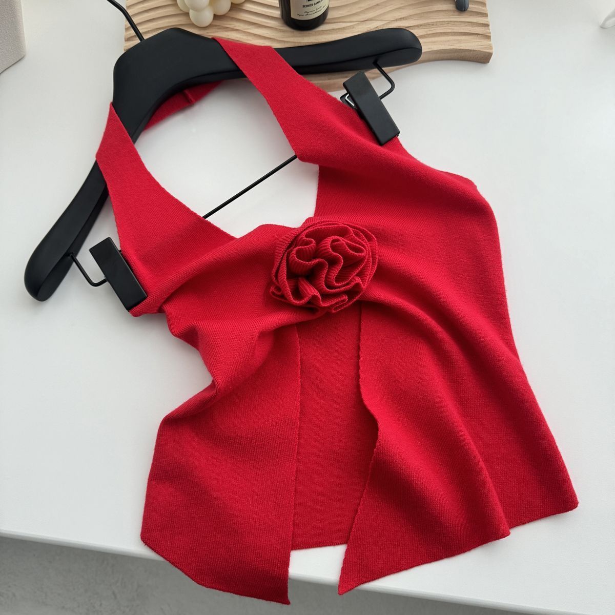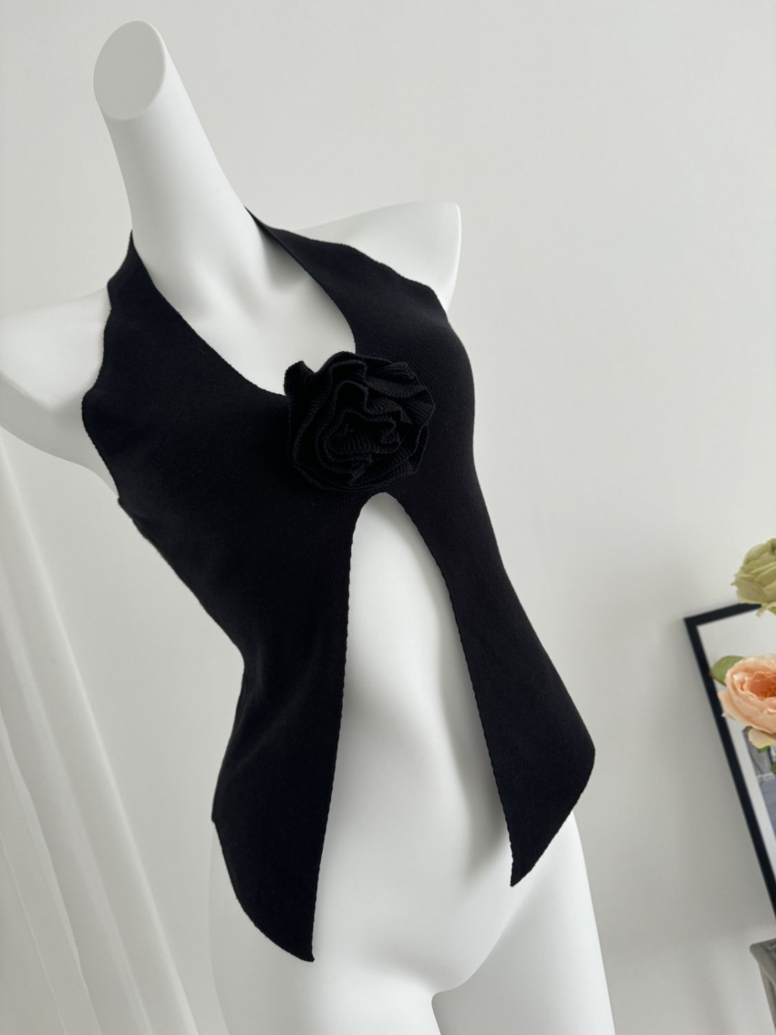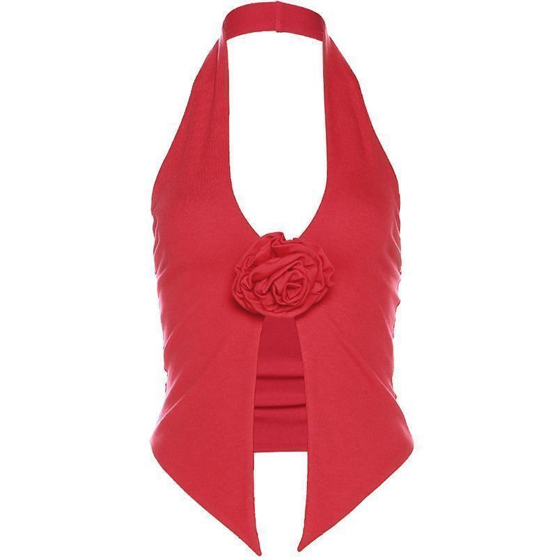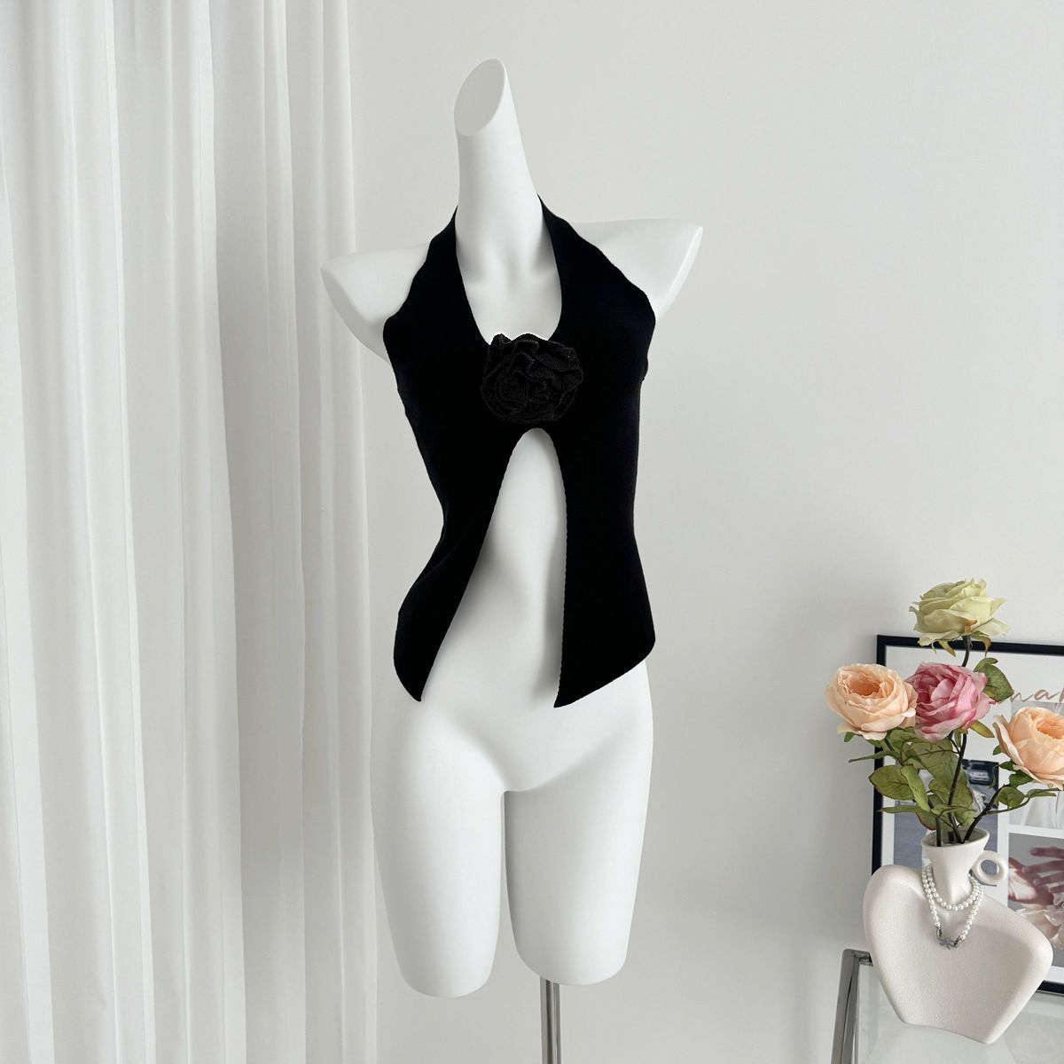 【20枚で送料無料】ホットガール立体フラワーホルターネックキャミソールレディース不規則韓国風スリットピュアデザイアトップ