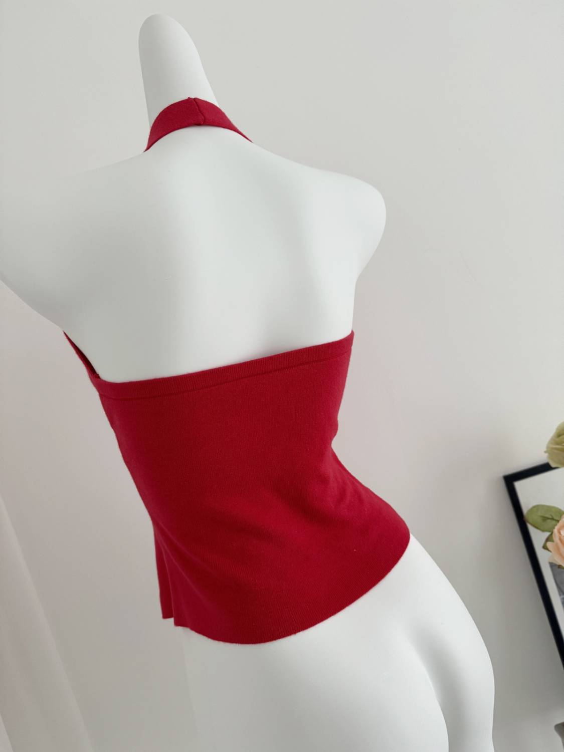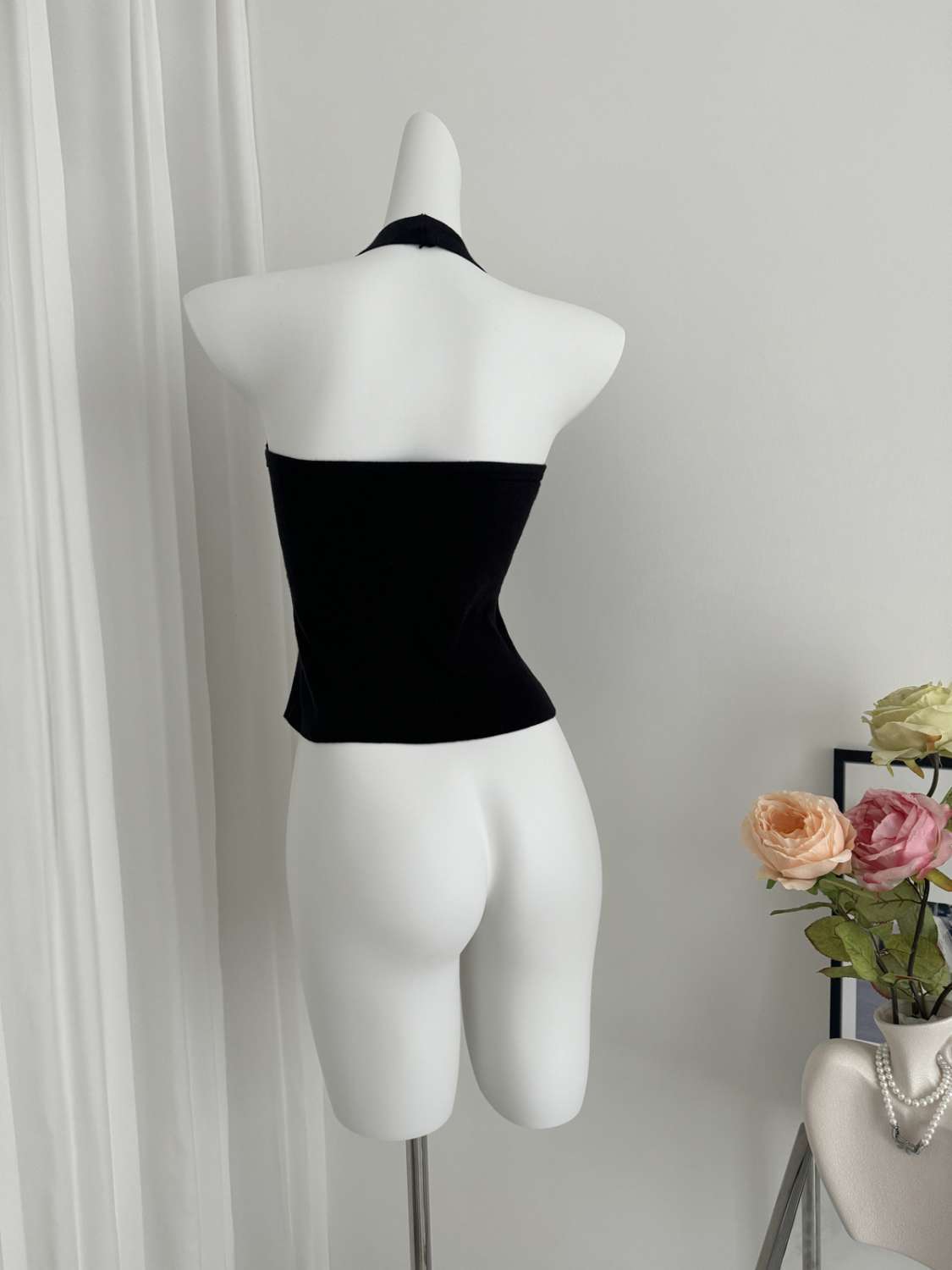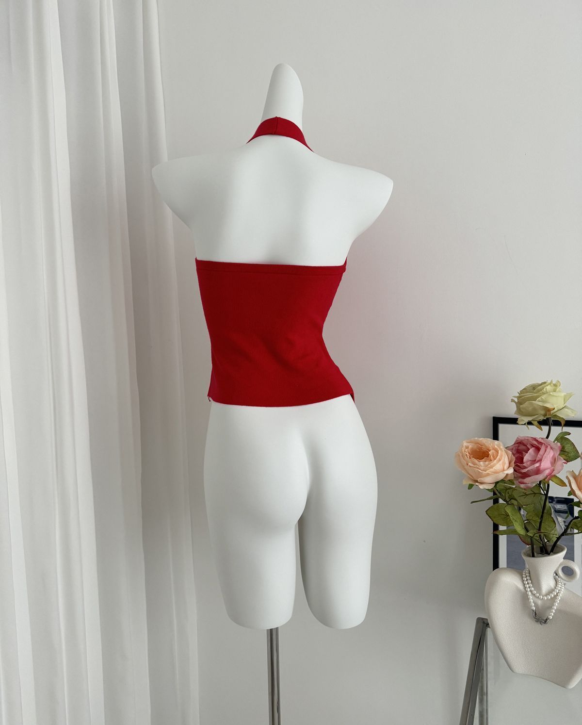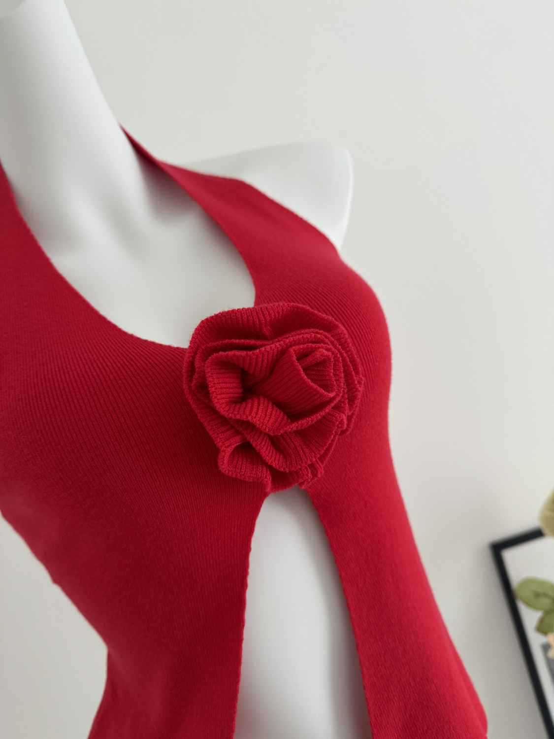【20枚で送料無料】ホットガール立体フラワーホルターネックキャミソールレディース不規則韓国風スリットピュアデザイアトップ