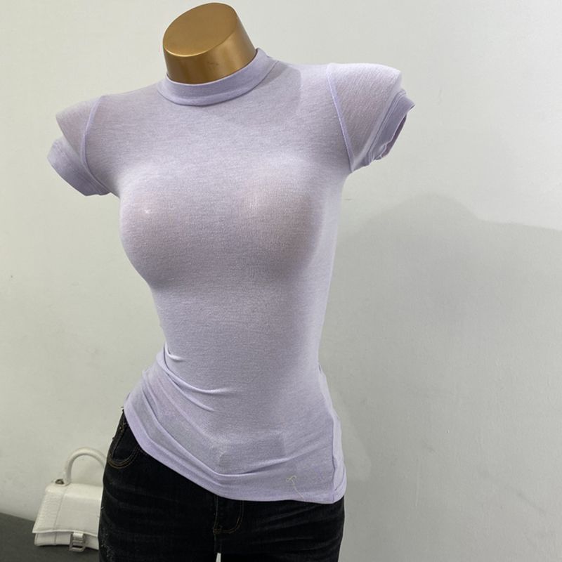 【月間10万枚販売】微透け半袖Tシャツ ボトリングシャツ スリムストレッチ ピュアディザイア インナー 2025新作 トップス 夏