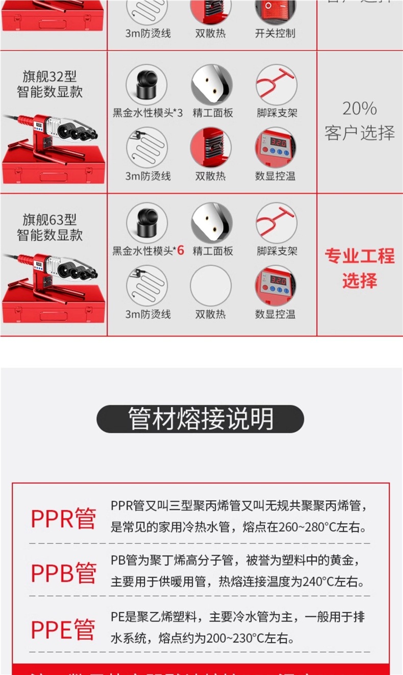 Delixi ホットメルター ppr デジタルディスプレイ温度制御ホットメルトチューブ溶接機家庭用熱容量機溶接水道管ホットメルト機