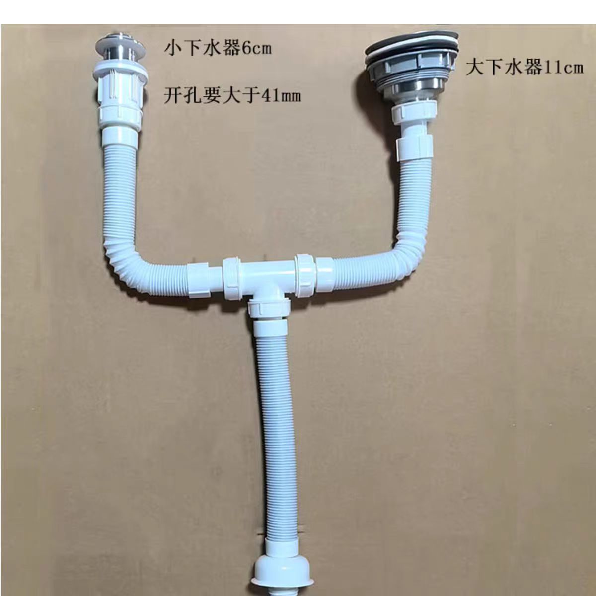 厨房水槽下水防堵防臭下水管洗菜盆单双槽下水管防返臭排水管批发