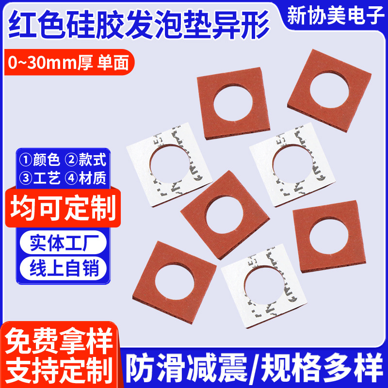 赤異形シリカゲル発泡パッド自己接着バックゴムシリカゲル製品シリカゲルパッド耐高温ガスケット卸売り