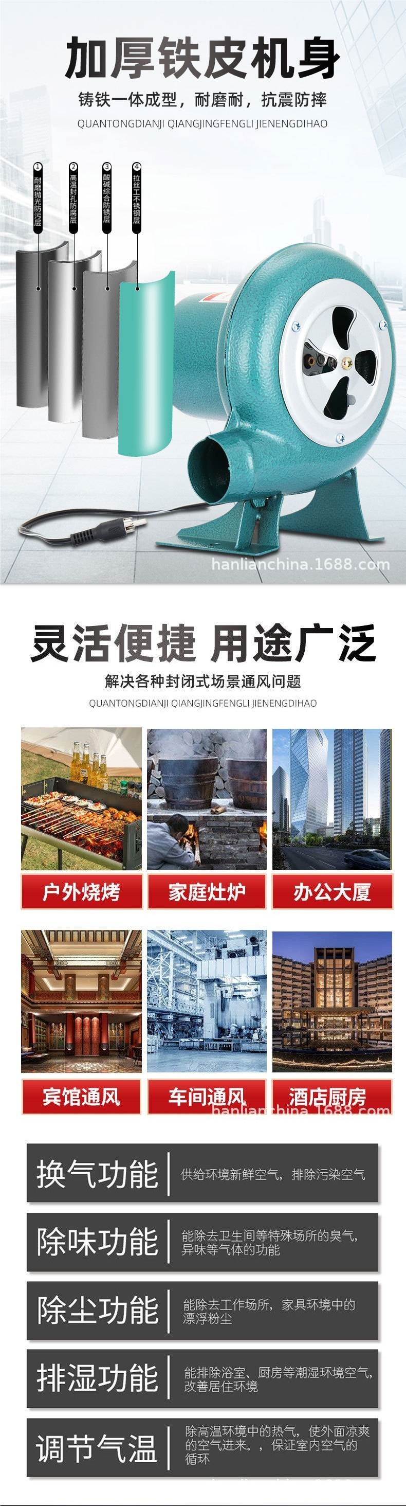 柴火炉鼓风机220V家用小型炉灶调速机烧烤油炉助燃吹风机