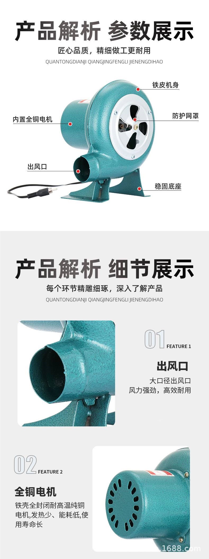 离心式纯铜电动鼓风机家用小型烧烤吹风机炉灶工业强力吹风机