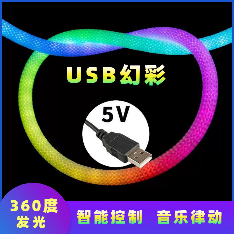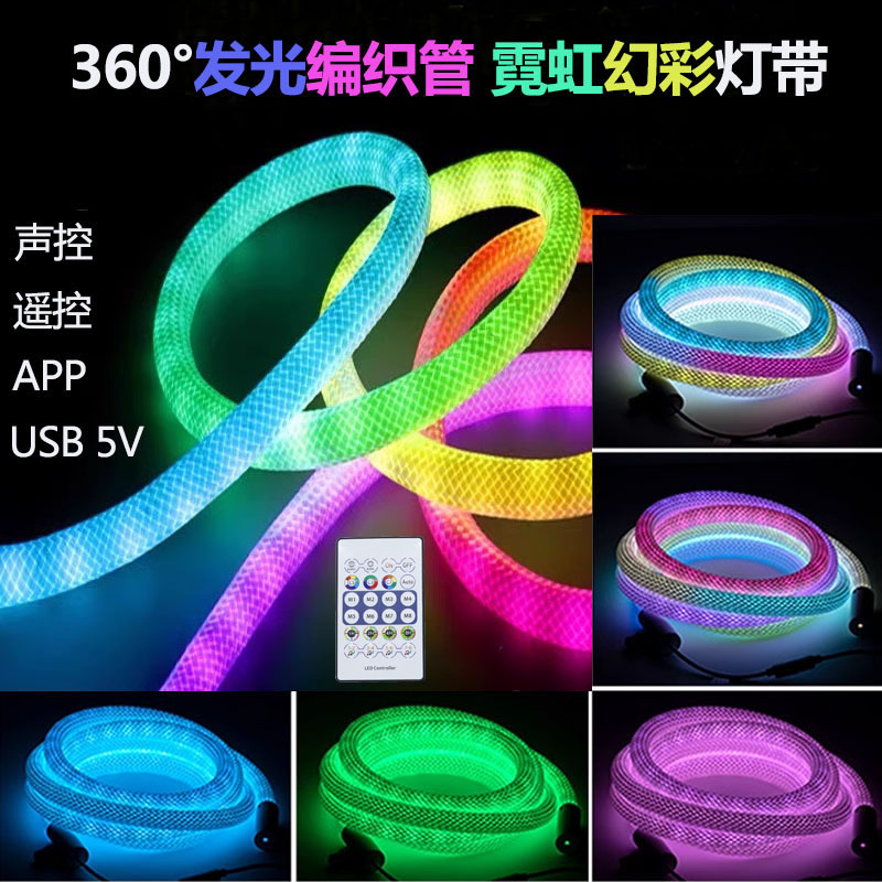 360度発光ネオンライトLEDメッシュRGB幻彩編組セット5v防水フレキシブルライン形ランプ