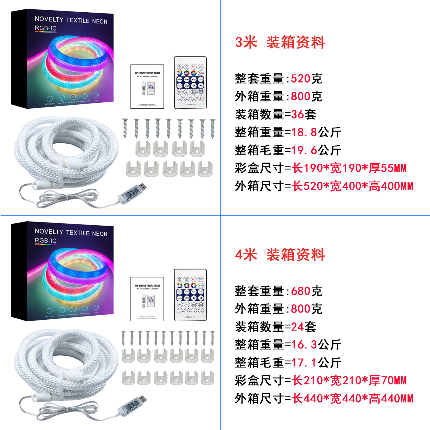 360度发光龙纹编织幻彩霓虹灯带套装rgb流水声控跑马灯带USB接口