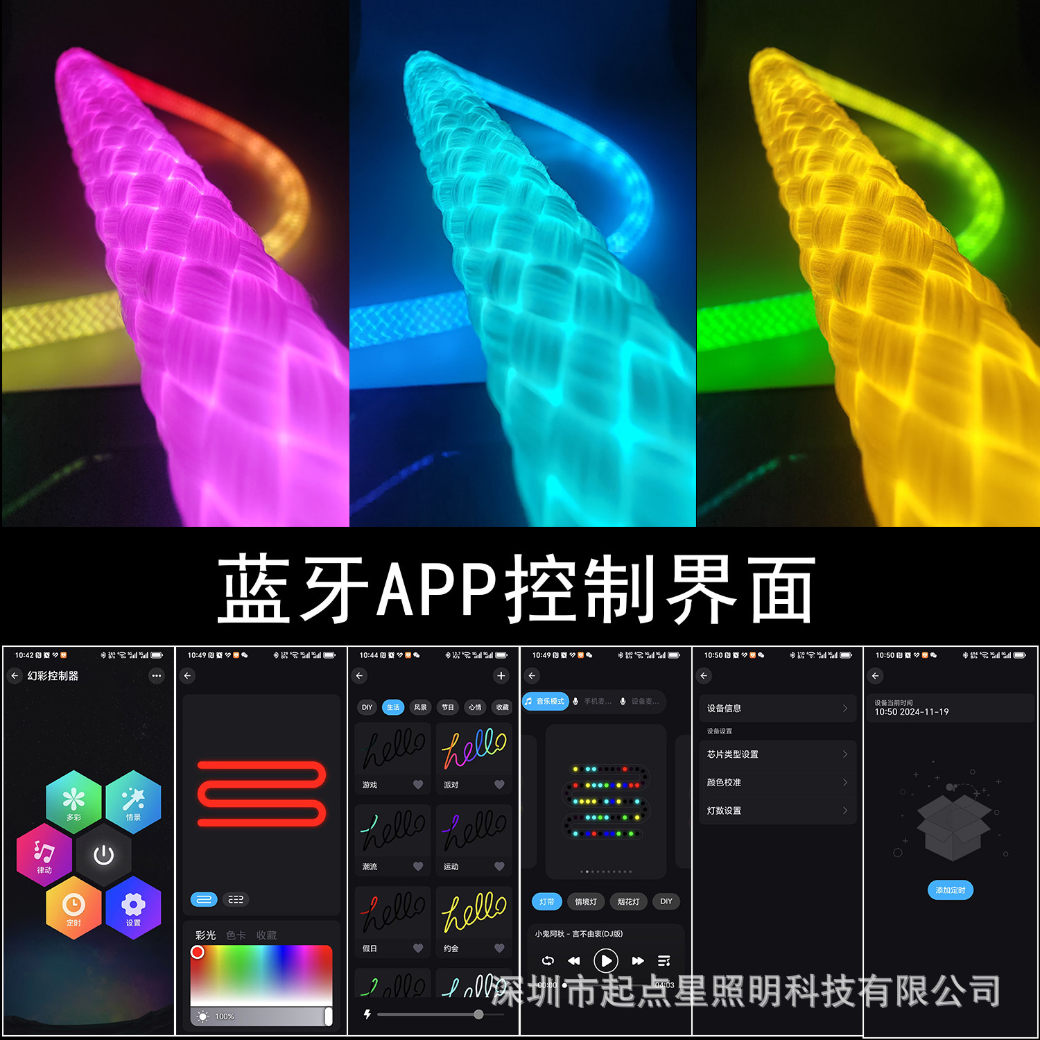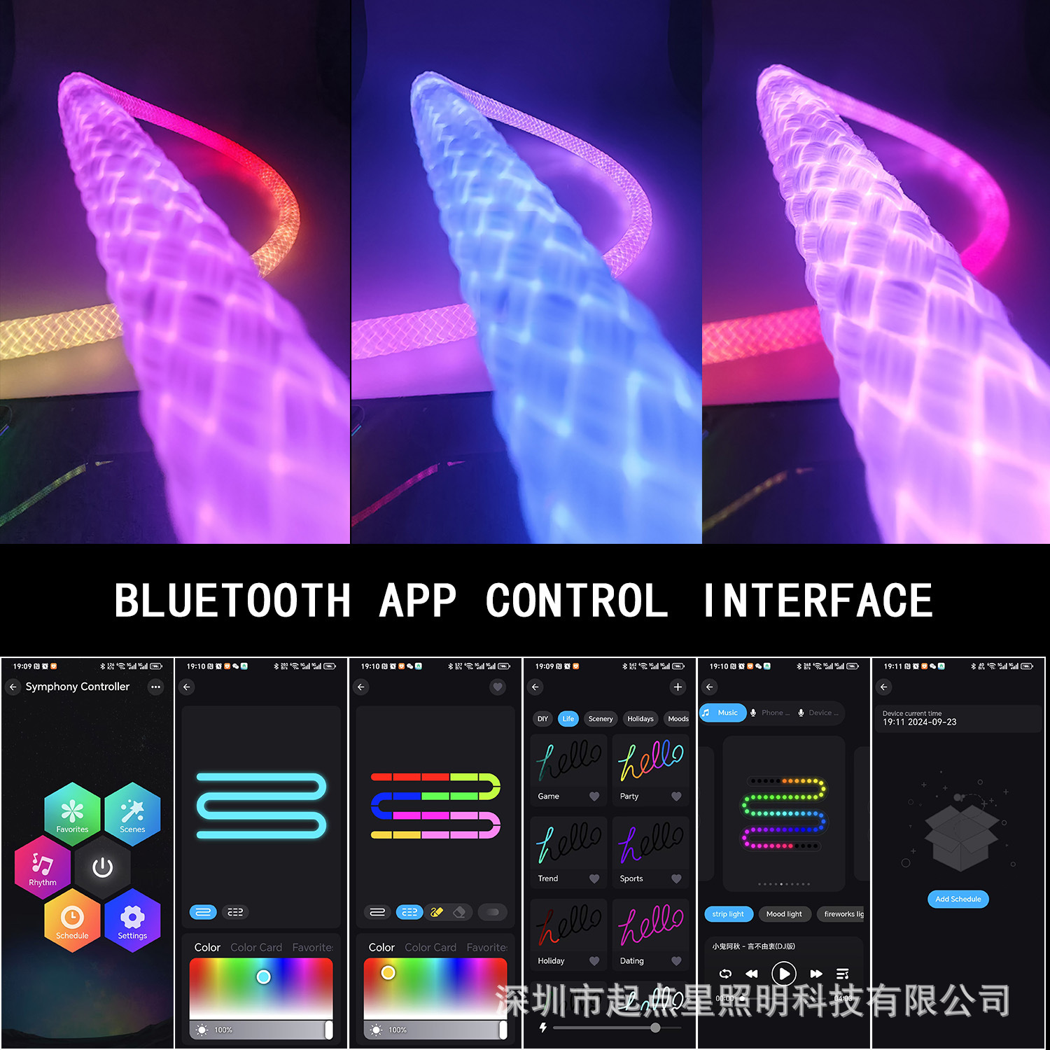 360度発光編組幻彩ネオン龍鱗紋路bluetooth音楽同期走馬流水効果5v