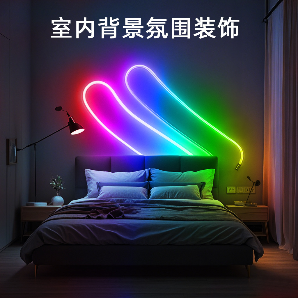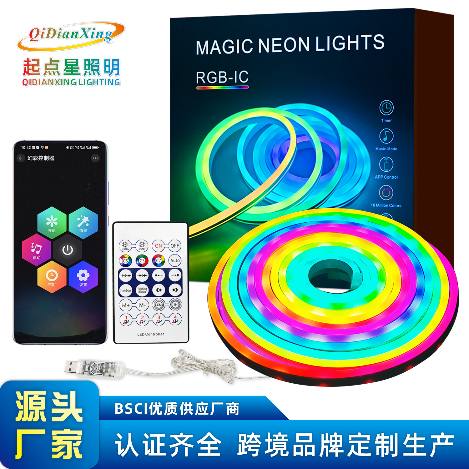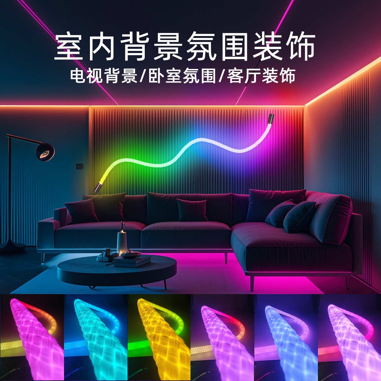 5V幻彩霓虹灯带USB柔性硅胶DIY造型智能跑马蓝牙拾音电竞 氛围条