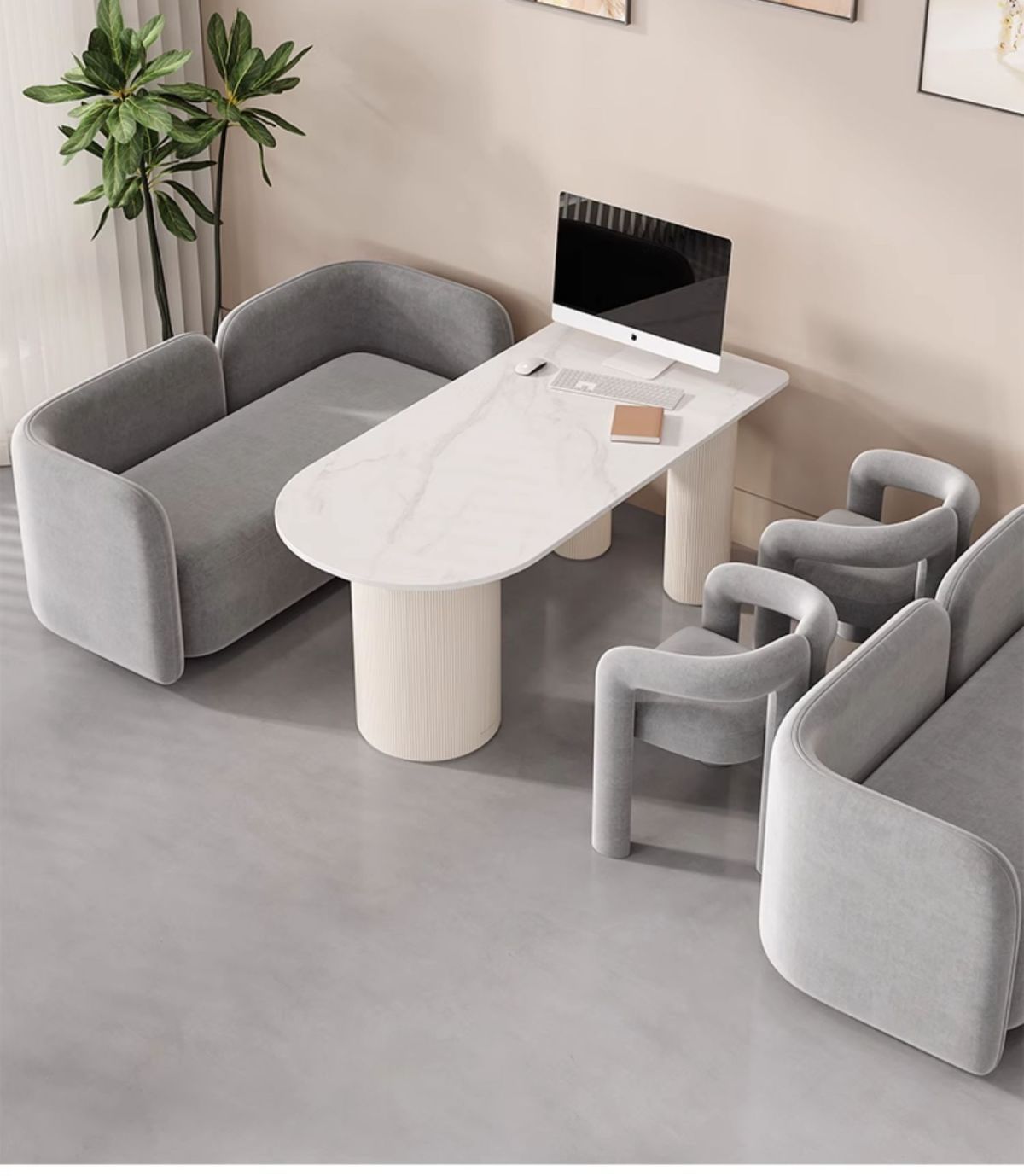 ライト高級オフィスコンビネーションソファヤードソファ曲面ソファ半円形シングルソファミルクティーショップビジネス佛山
