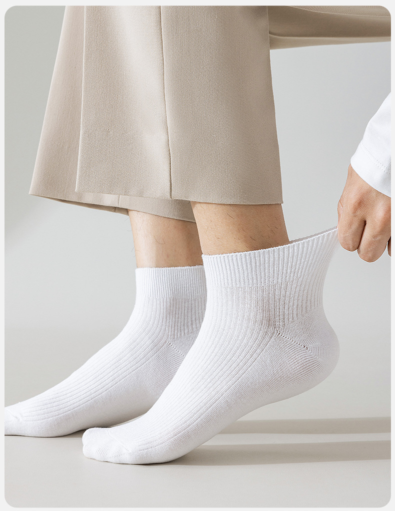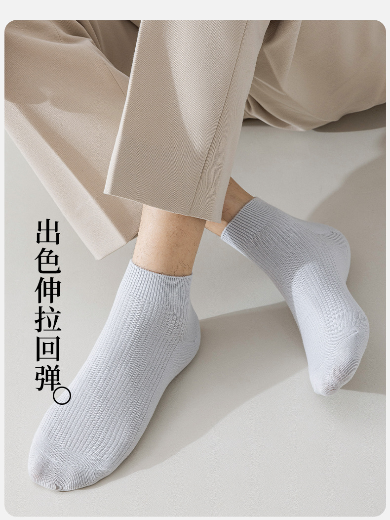 二本針ソックス無地綿ソックス小中チューブ通気性ショートソックス春夏薄い黒快適な綿メンズソックス