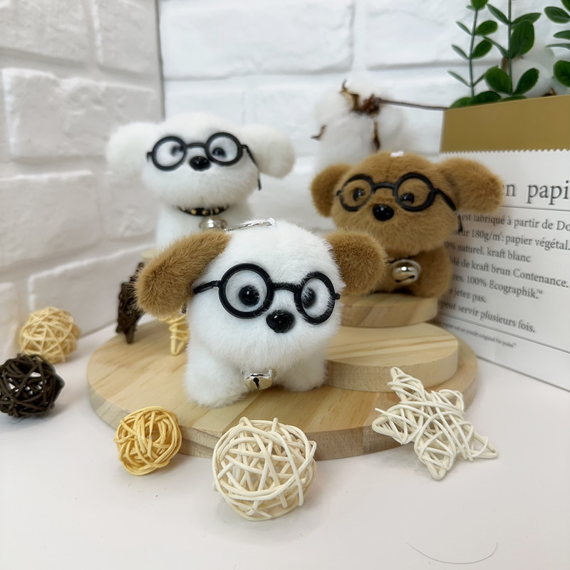 国境を越えたメーカーによる卸売、眼鏡をかけた犬、ビションフリーゼのキーホルダー、かわいい漫画の犬のぬいぐるみ、バッグアクセサリー、ペンダント