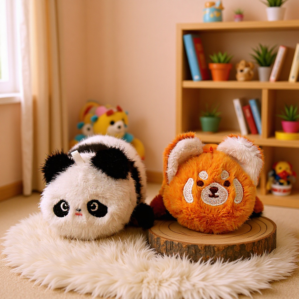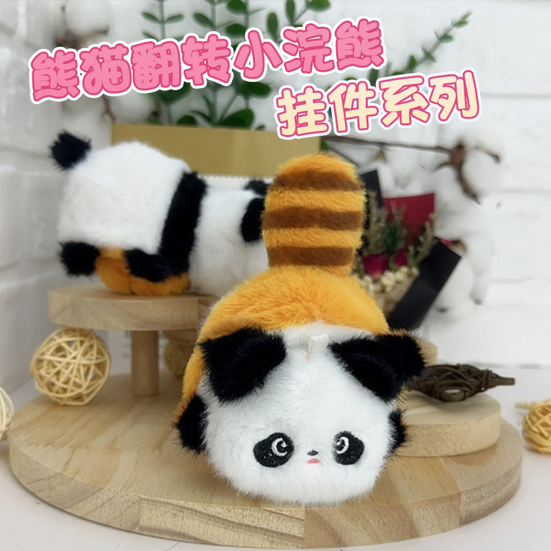 四川熊猫翻转小浣熊变身熊猫翻翻趣味书包包挂件毛绒钥匙扣玩具