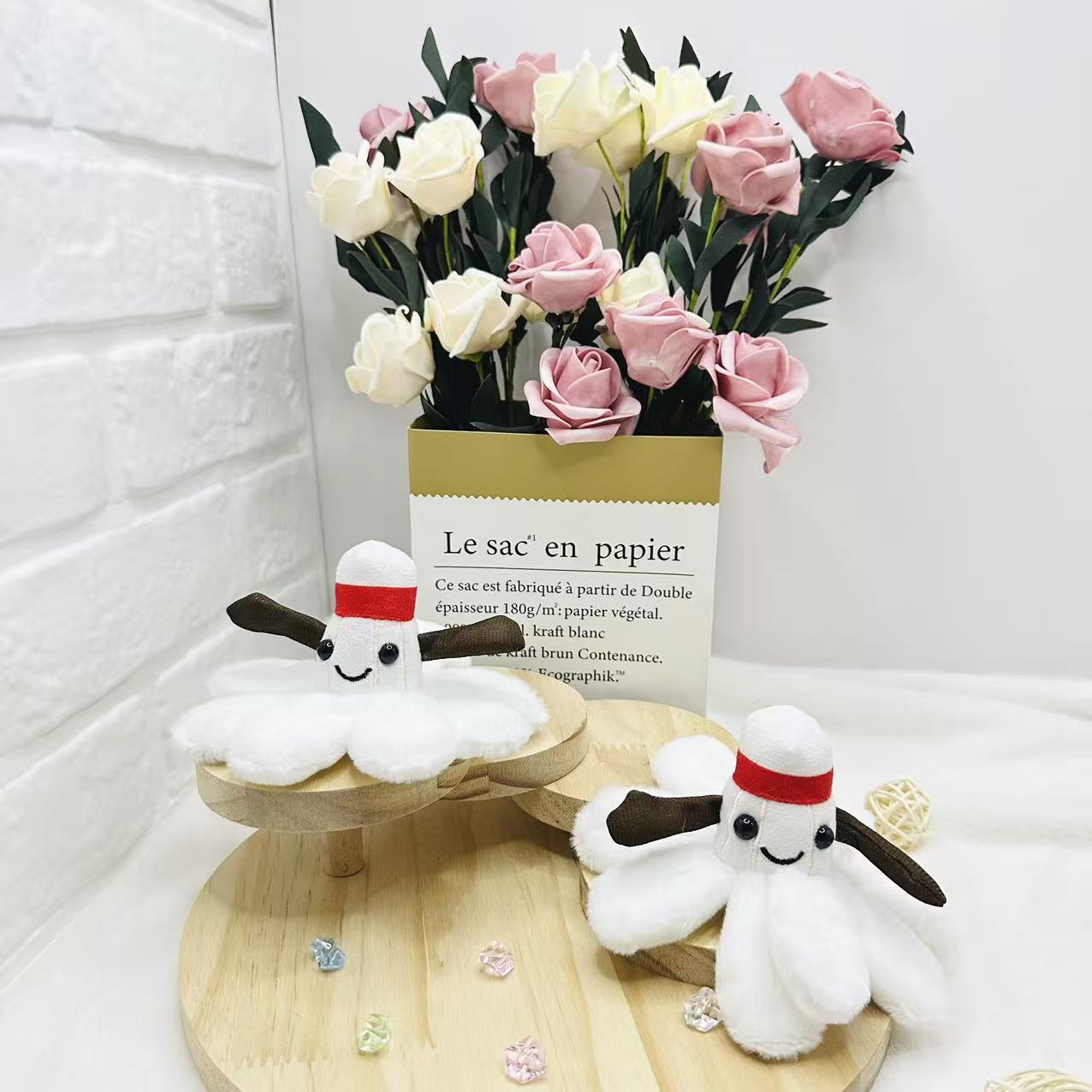 国境を越えた愛の線でつながる子犬の漫画風ぬいぐるみキーホルダー、景品用ぬいぐるみ、卸売