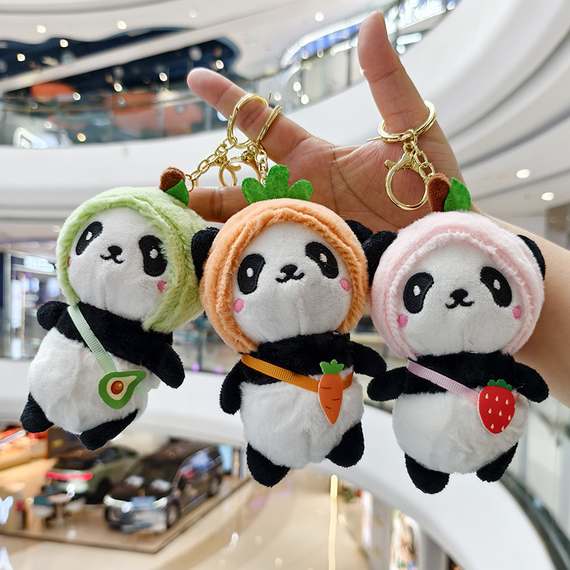 ネットの赤い果物のパンダのぬいぐるみの子供の包みのカップルのペンダントの贈り物の人形のキーホルダーの卸売り