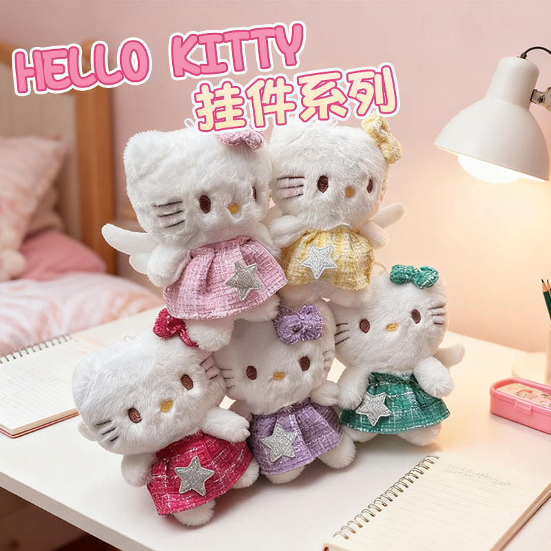クロスボーダーKT猫エンジェルハローキティぬいぐるみキーホルダーバッグチャームinsガールズドレス猫