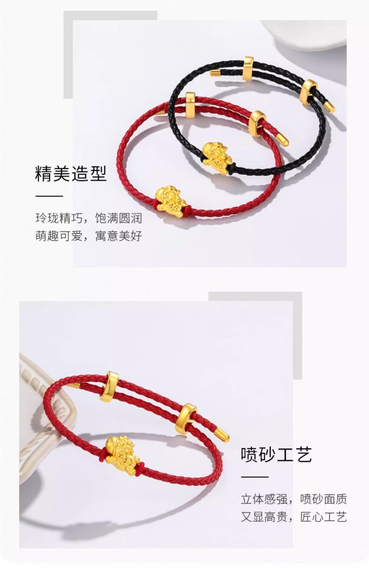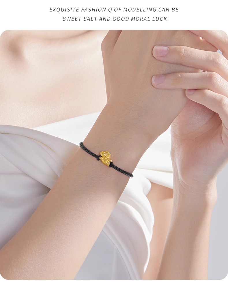 九鳳祥999純金貔貅金包銀 黄金小貔貅ブレスレット 編み込みブレスレット 可愛い可愛いスタイル 女性へのプレゼント