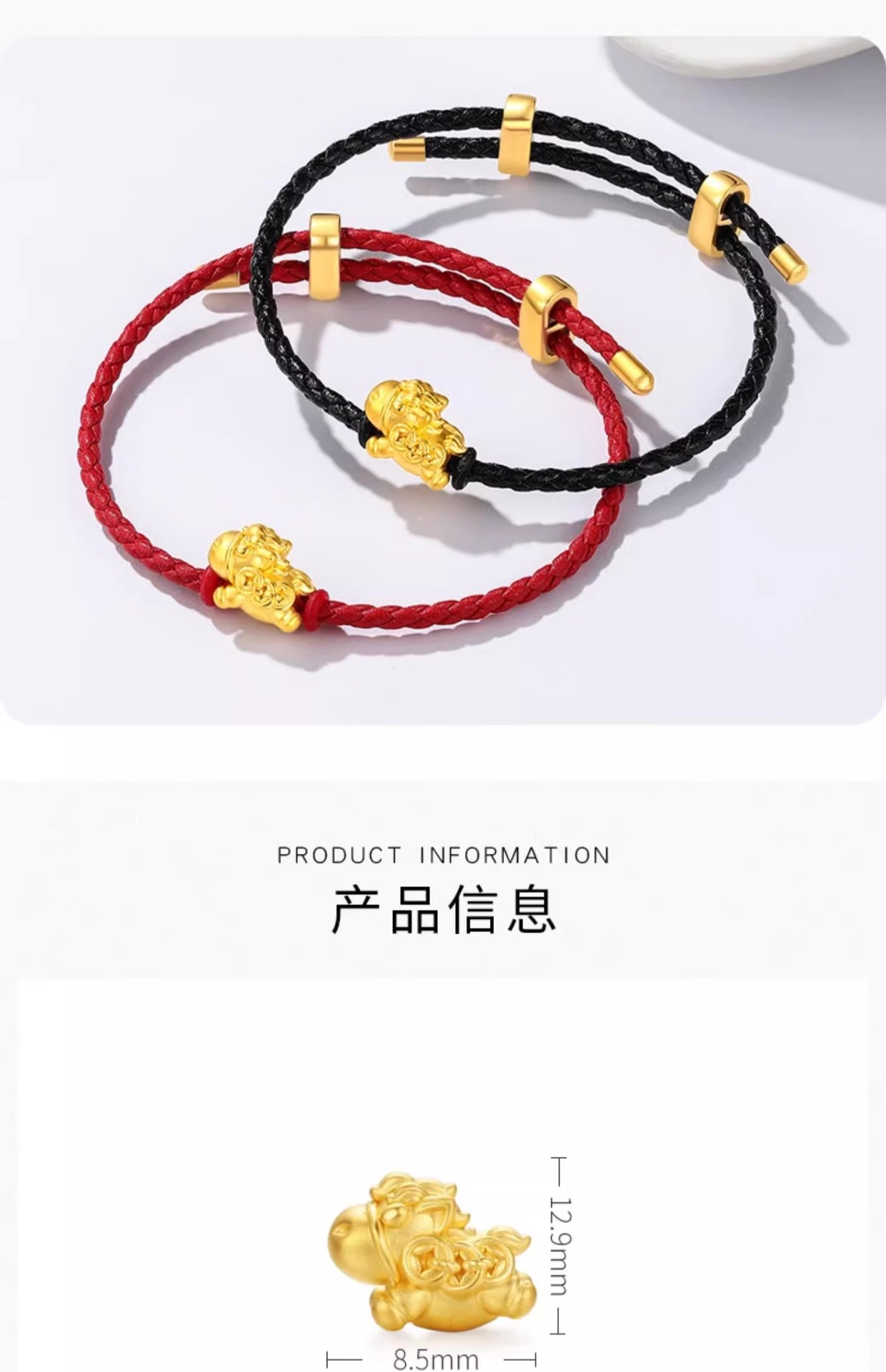 九鳳祥999純金ブレスレット金銀包金 黄金五帝銭編み込みブレスレット本命年赤紐編み込みギフト