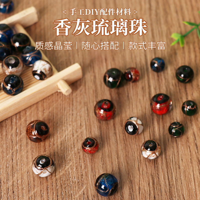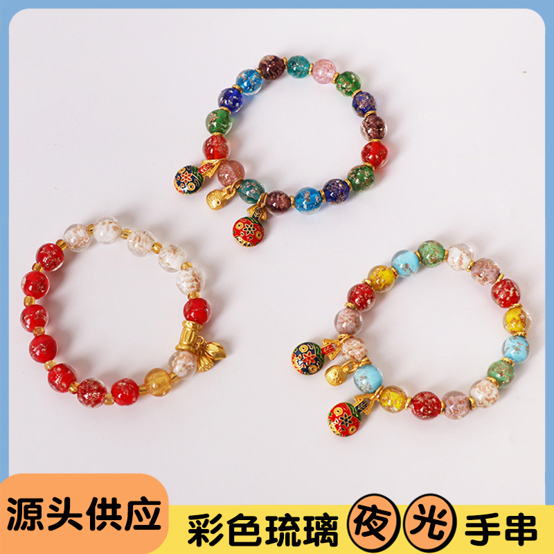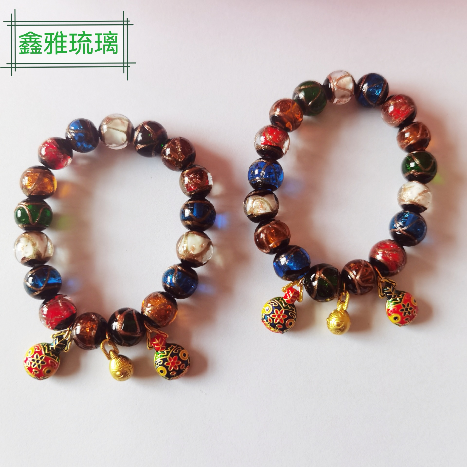 香灰瑠璃手串ブレスレット金箔珠三通アクセサリーアクセサリー七色瑠璃珠手串卸売り可能
