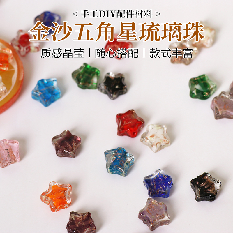 金沙五芒星ガラスビーズストレートホール diy 透明ガラスビーズ銀箔スター手作りヘアピンタッセルルースビーズ