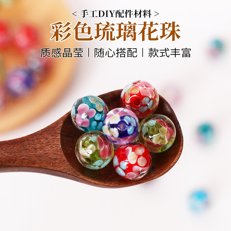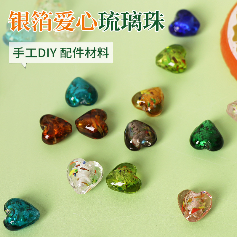 カラー銀箔愛瑠璃珠レトロかわいい手描き瑠璃珠手作りイヤリングDIYアクセサリーアクセサリー