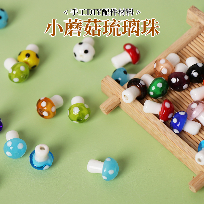 キノコ瑠璃珠カラー手描き瑠璃散珠漫画斑点手作りdiy児童手串ペンダントビーズ