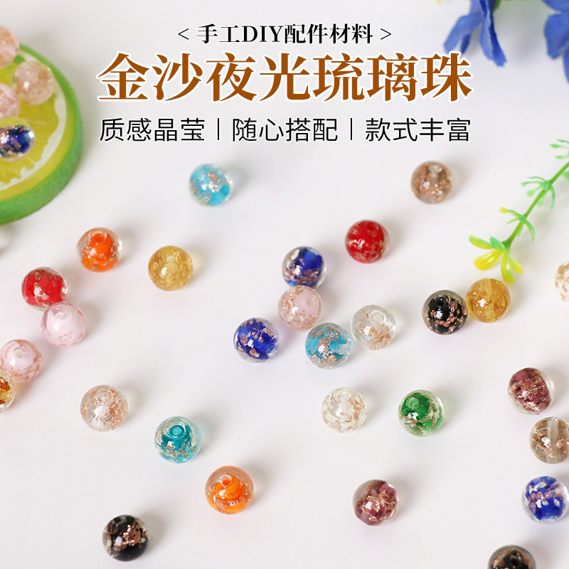 金沙発光ガラスビーズ手作りジュエリーアクセサリー DIY 透明ラウンドビーズブレスレット穴あき発光ビーズ素材