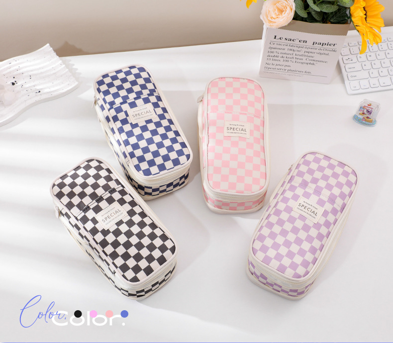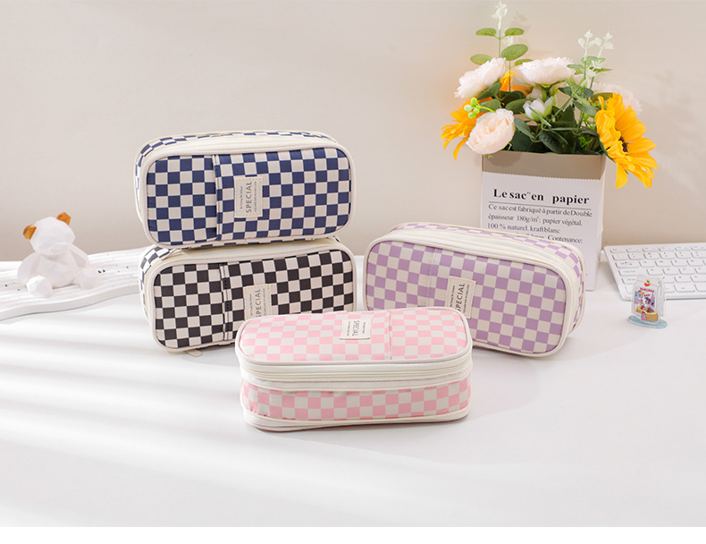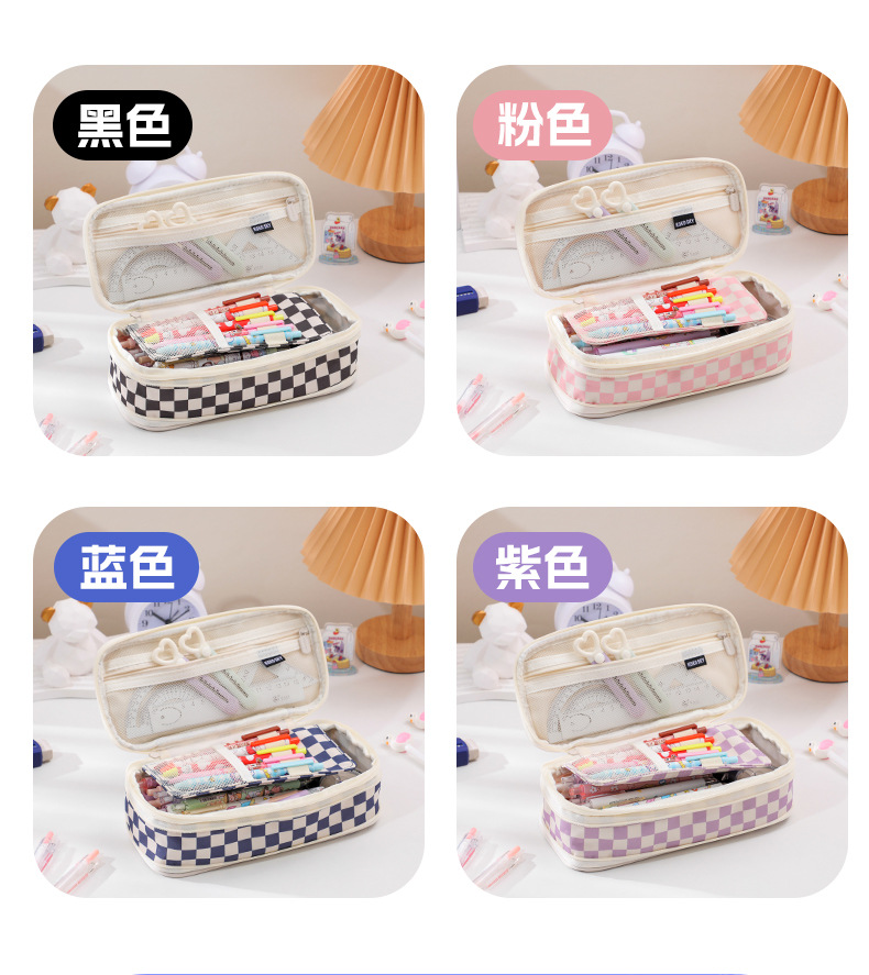 韓国版高颜値筆袋大容量中学生文房具箱クロスボーダー二重帆布シンプル純色文房具袋