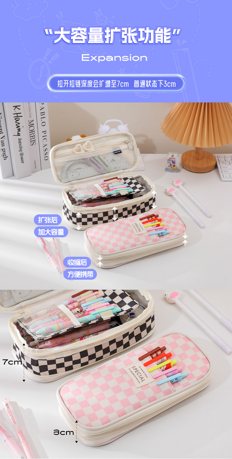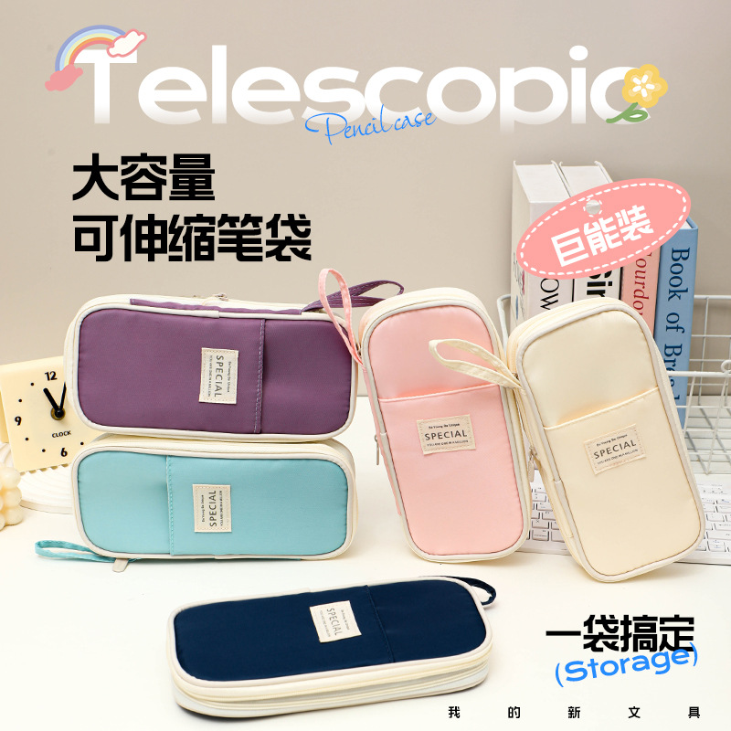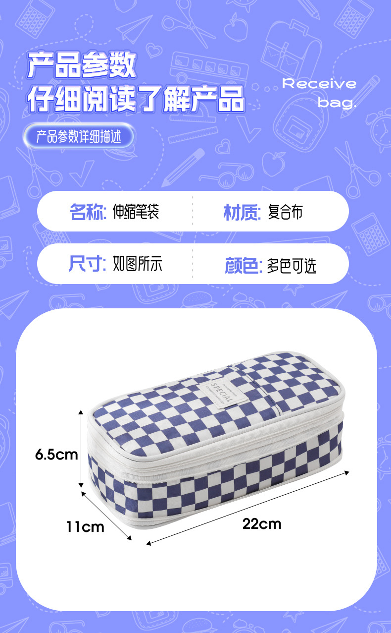 亚马逊手提复合布伸缩文具袋学生多功能双拉链简约可变身大容量
