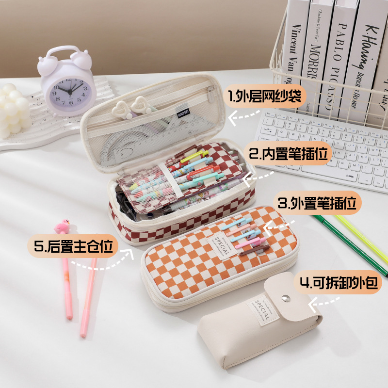 亚马逊跨境收纳笔袋大容量耐脏ins高颜值文具盒高级多功能铅笔盒