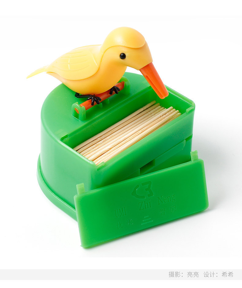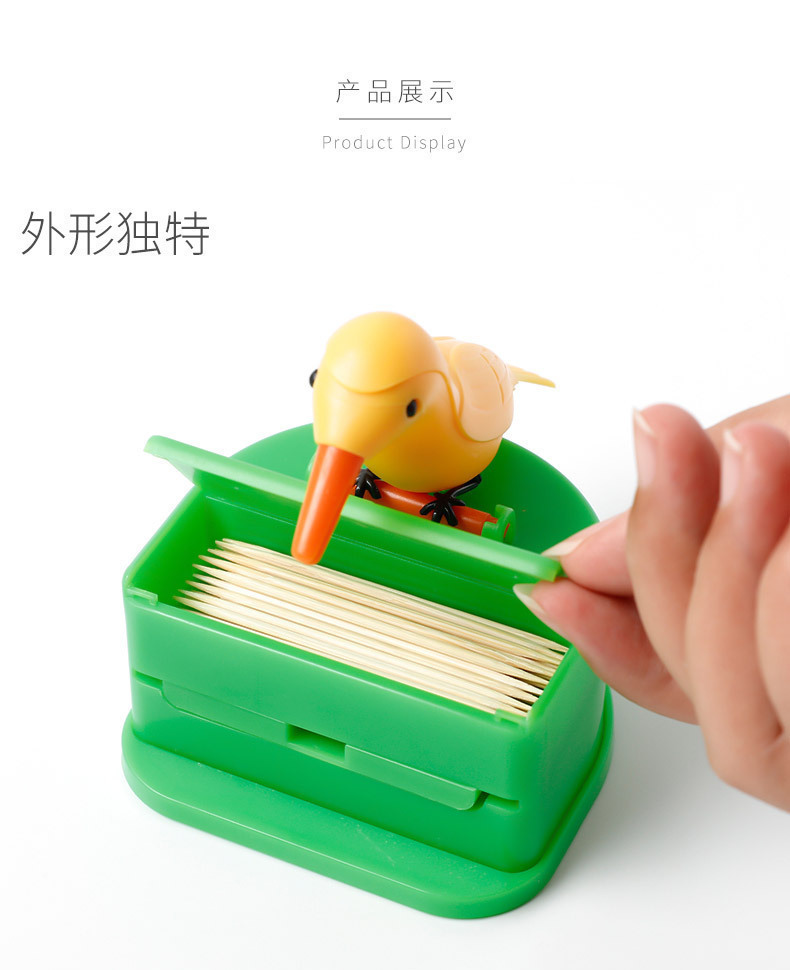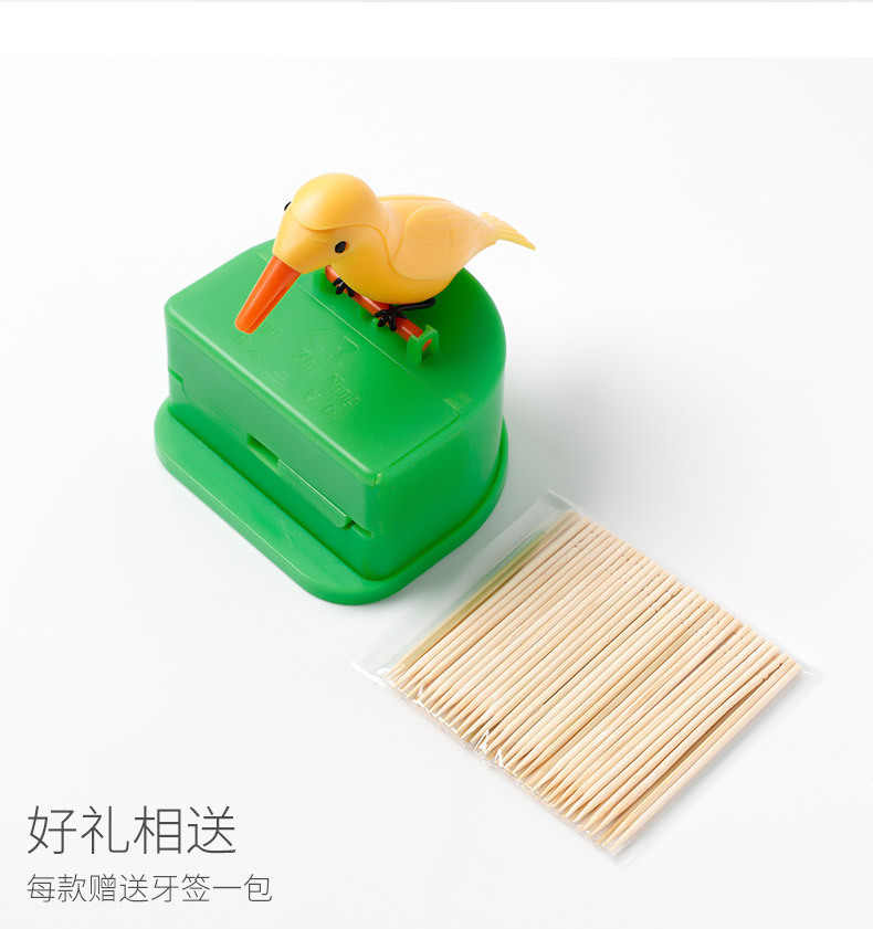 小鸟牙签盒创意按压自动出签牙签筒家用客厅可爱啄木鸟啄食牙签桶