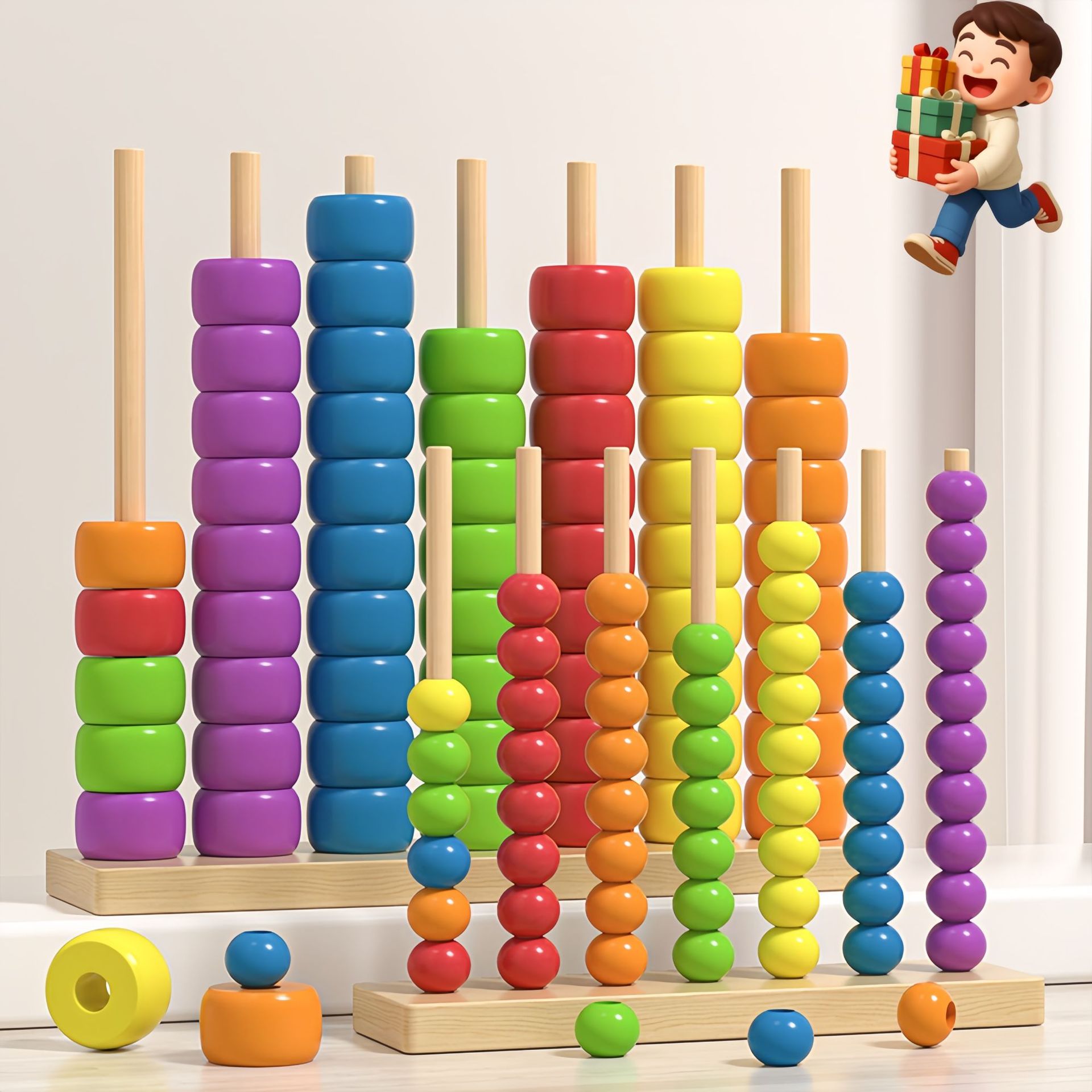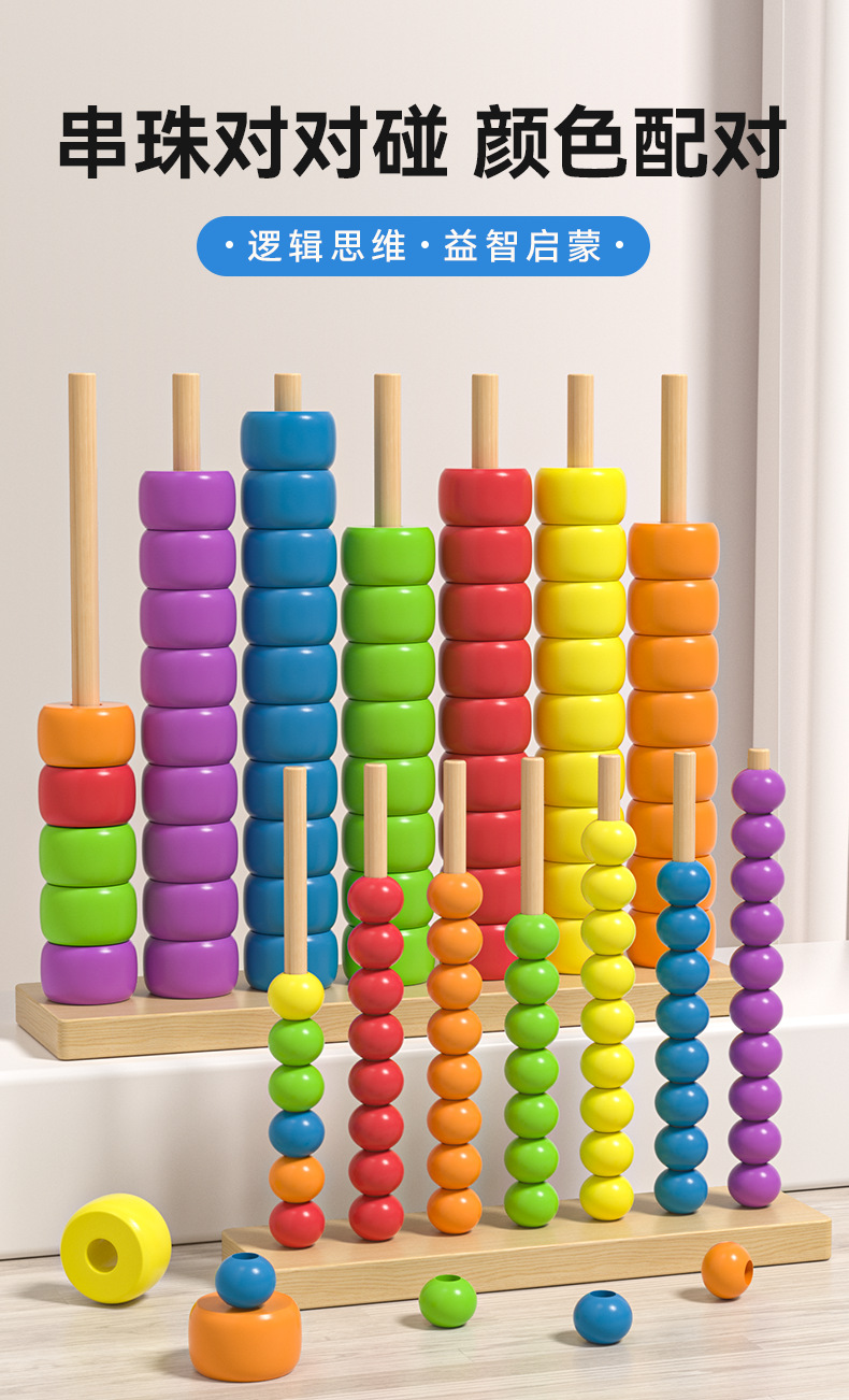 木质多彩串珠早教计算架颜色对对碰趣味幼儿园宝宝训练益智玩具