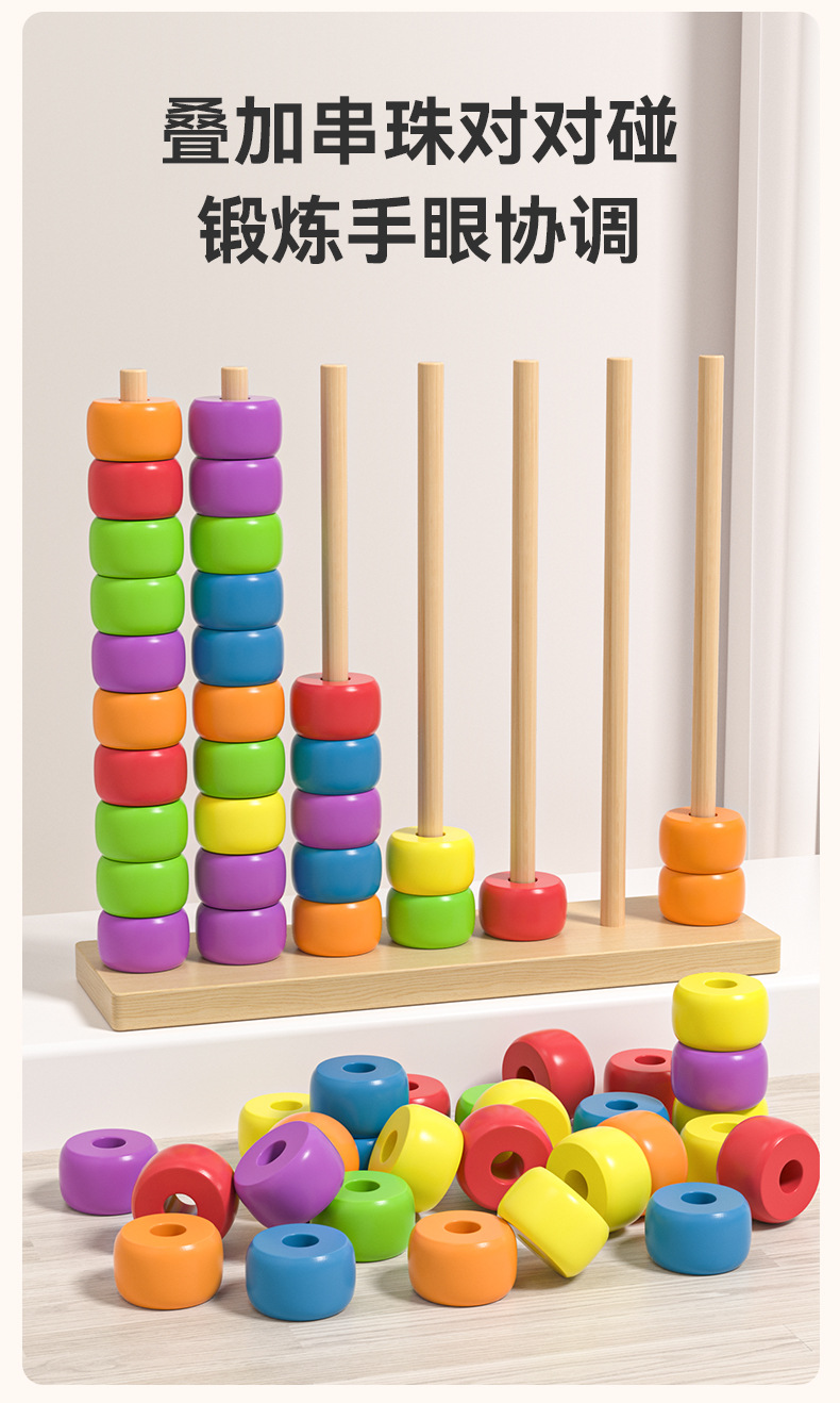 木质串珠多彩宝宝玩具益智早教智力开发计算架趣味手眼协调训练