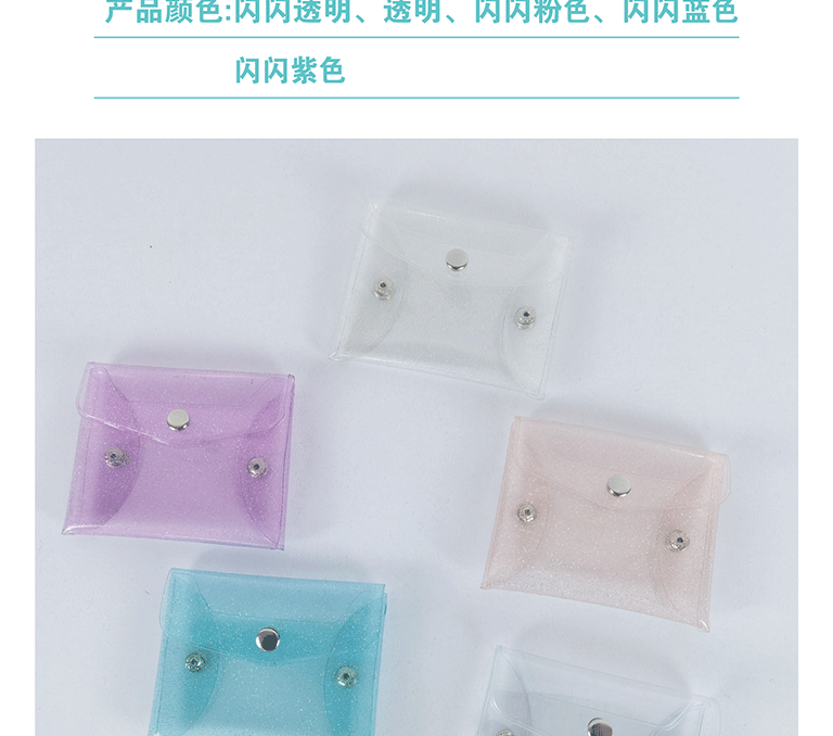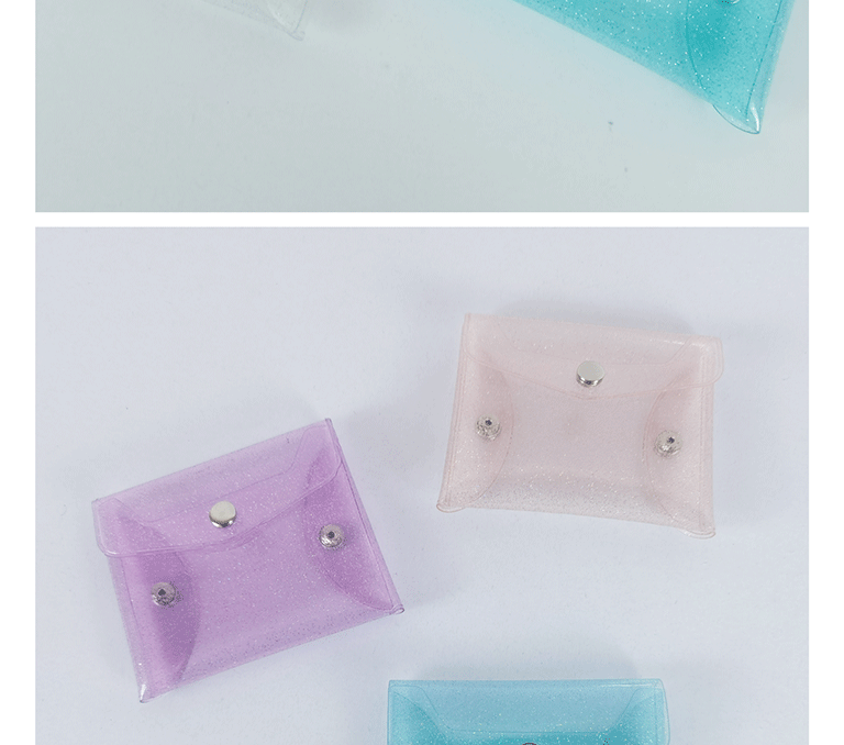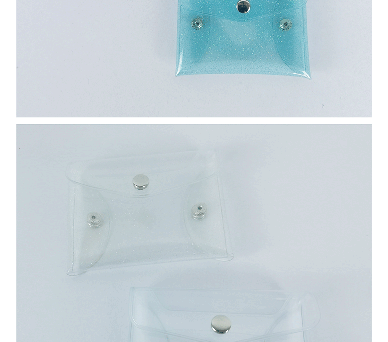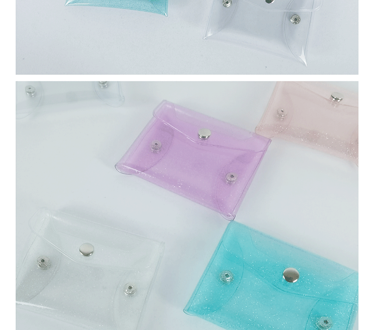 仕様 透明スナップバッグ,透明キラキラスナップバッグ,ピンクの透明グリッタースナップバッグ,パープル透明グリッタースナップバッグ,ブルー透明グリッタースナップバッグ