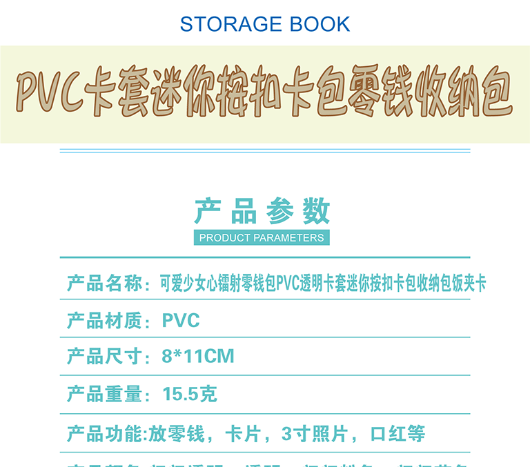 かわいいガーリーハート小銭入れ PVC 透明カードホルダーミニスナップカードホルダー口紅 ID 収納袋ランチクリップカード