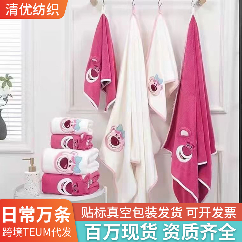 かわいいイチゴクマタオルバスタオルセット漫画カップル子供用糸くずの出ないスーパーソフトで快適な吸収性入浴と吸収性