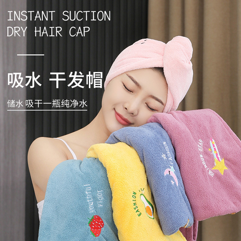 跨境珊瑚绒卡通水果绣花干发帽吸水速干女长发毛巾擦头浴帽包头巾
