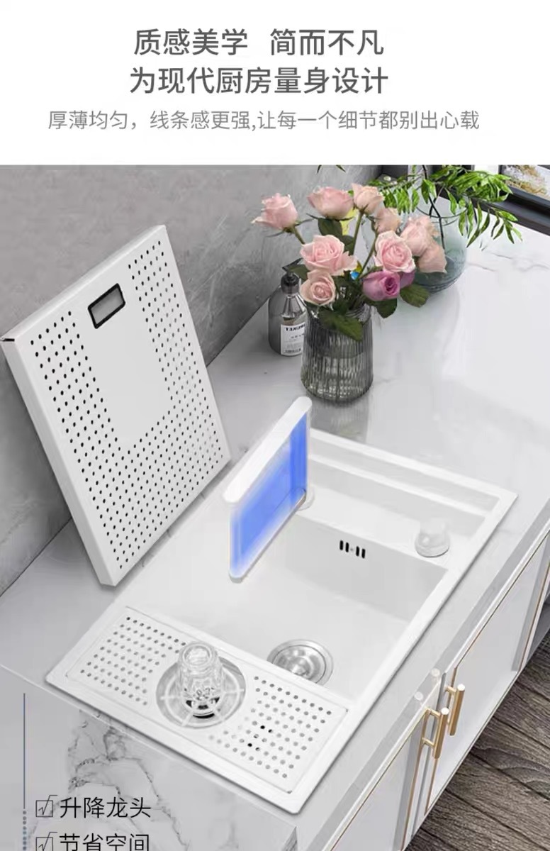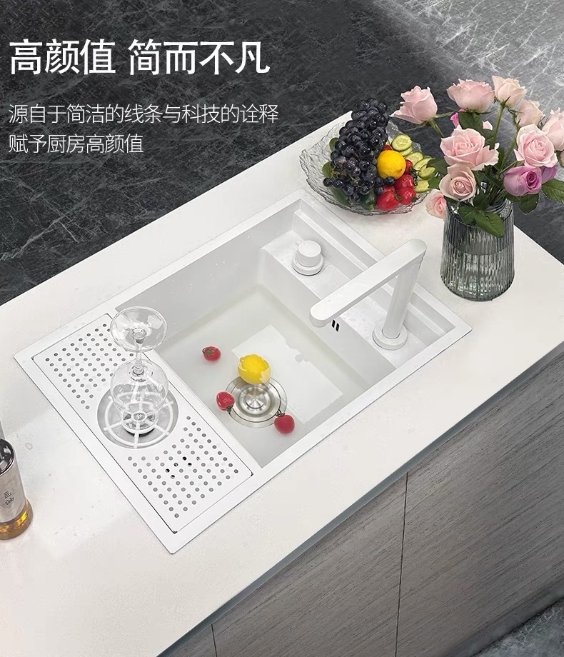 クジラモデル多機能統合デジタルディスプレイ蛇口大型シングルスロット食器洗いシンクキッチンディッシュラックシンク