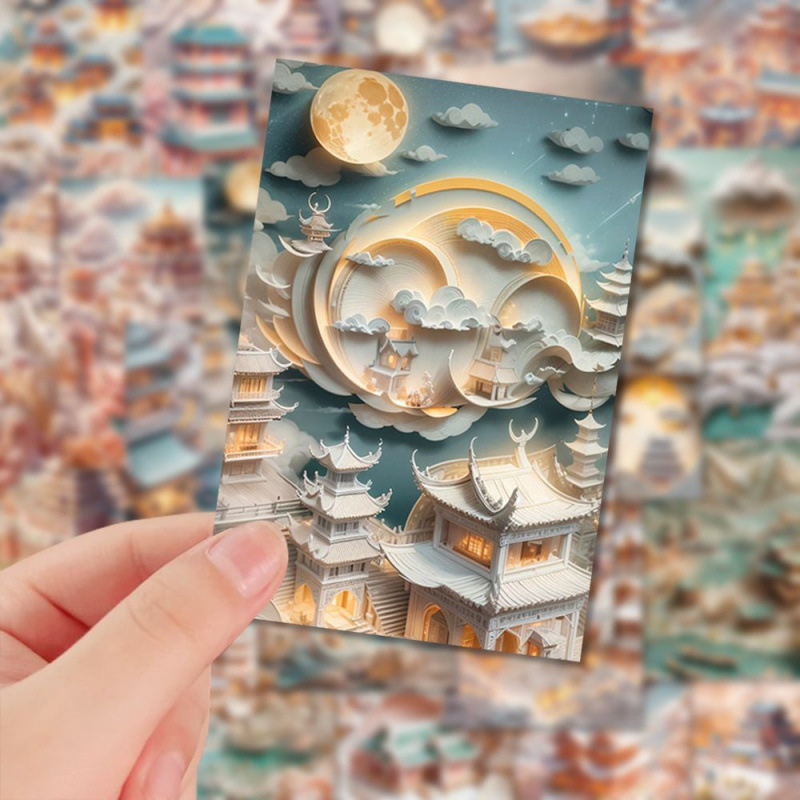 100枚の国風芸術立体紙シール高颜値爆金中秋節古風ノート防水シール