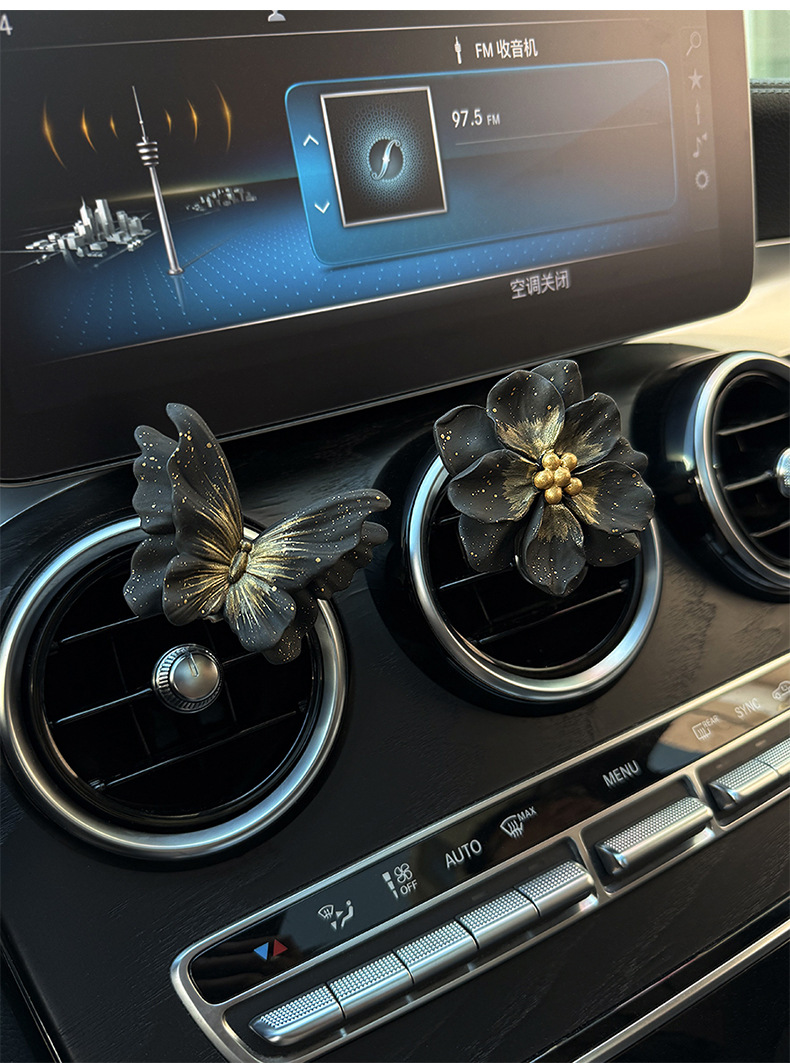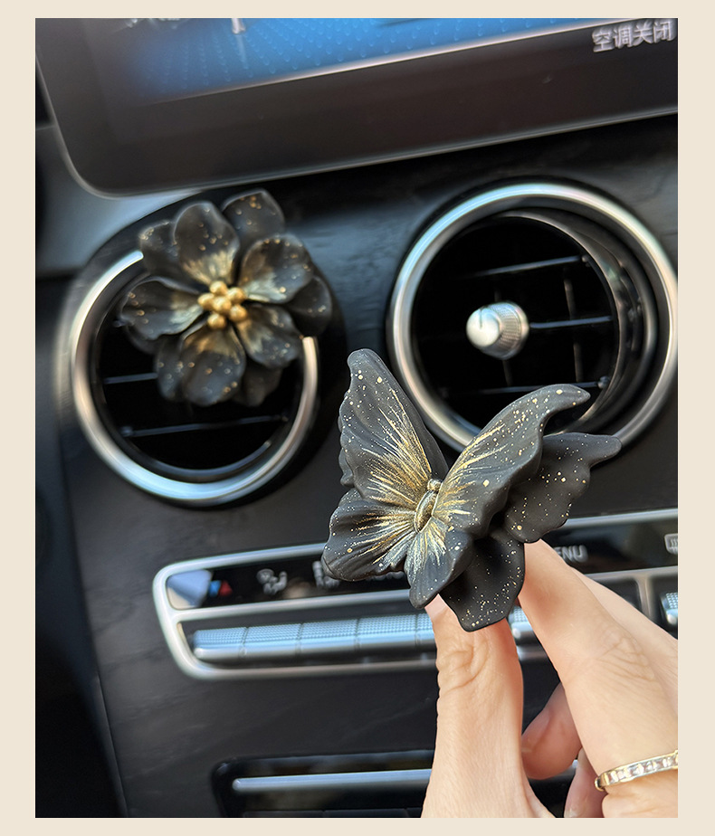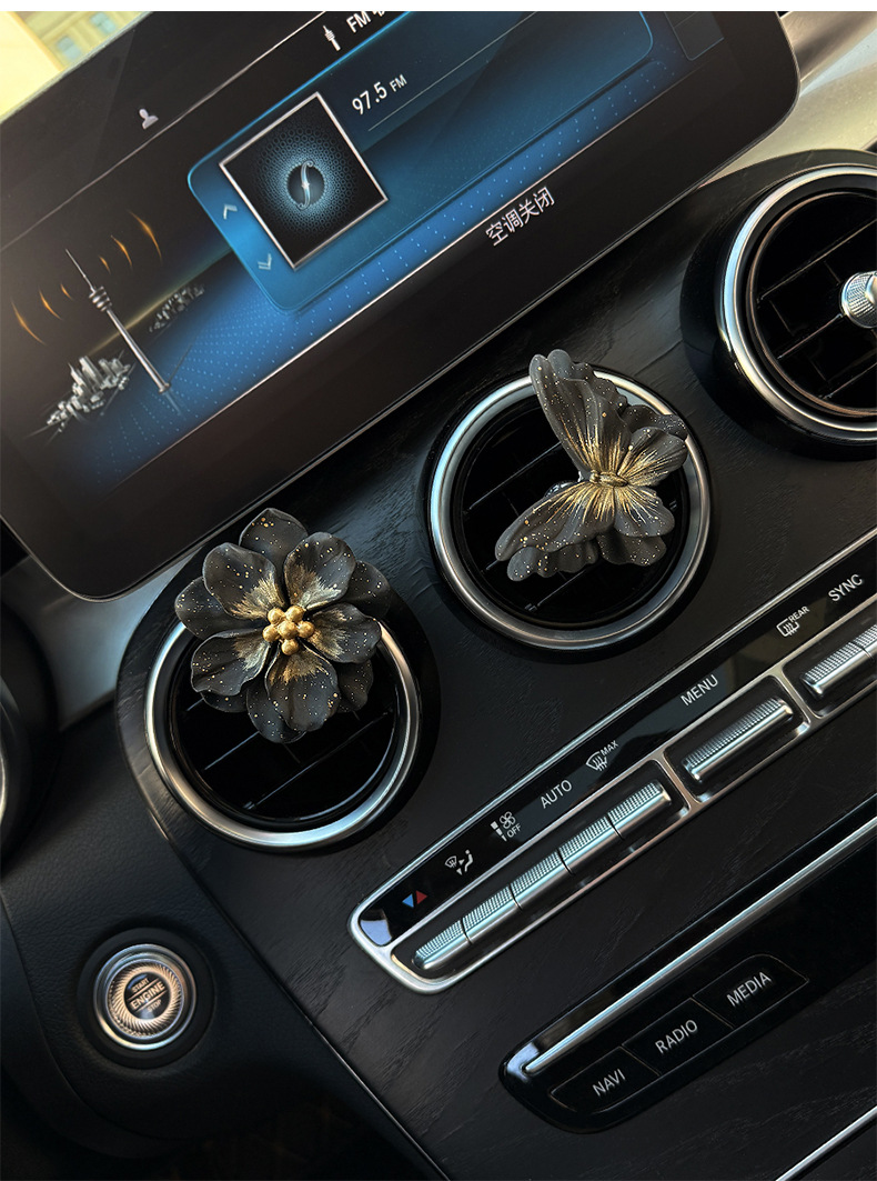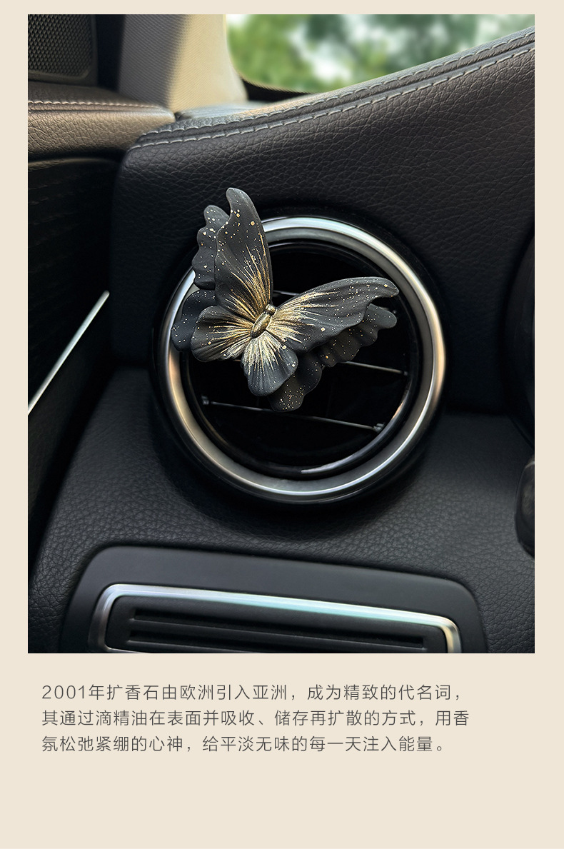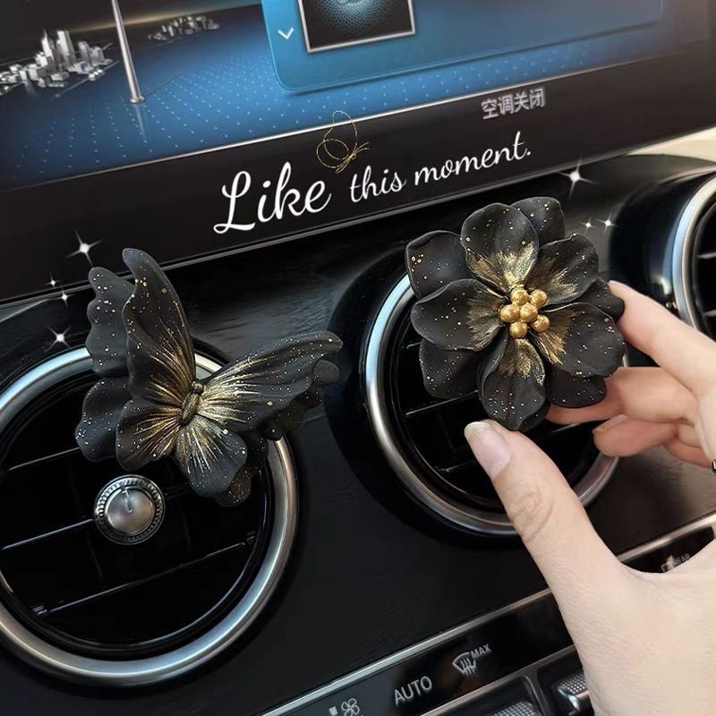 车载黑金高级空调蝴蝶出风口香水汽车扩香石香薰花朵车内装饰摆件