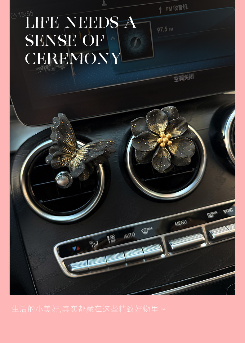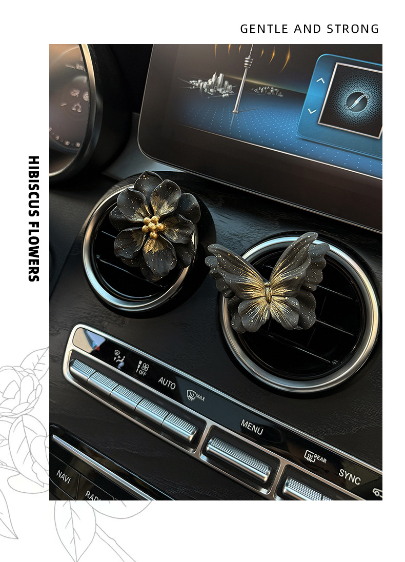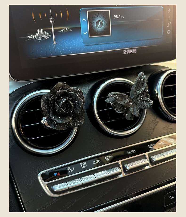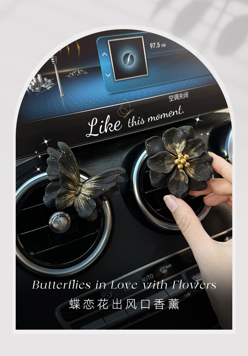 车载黑金高级空调蝴蝶出风口香水汽车扩香石香薰花朵车内装饰摆件