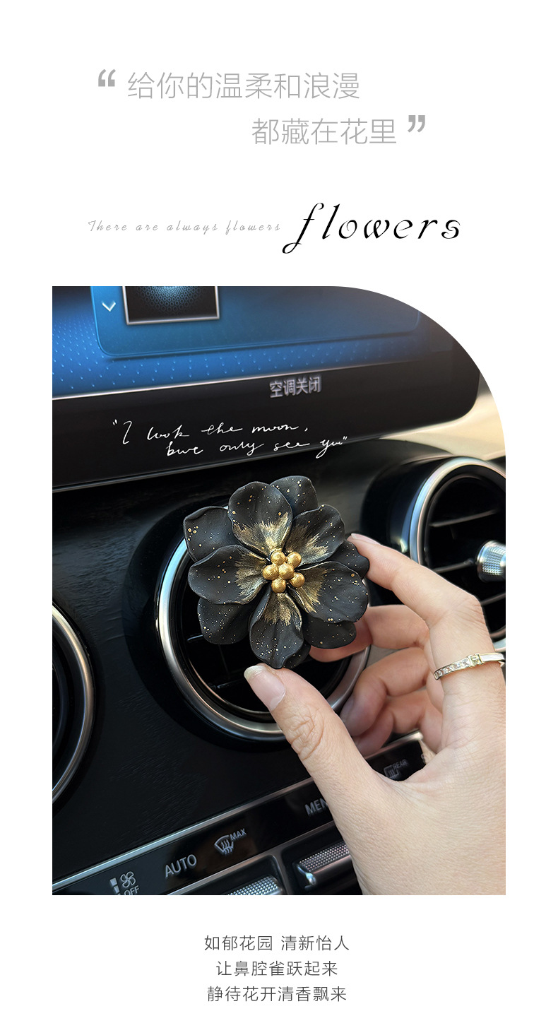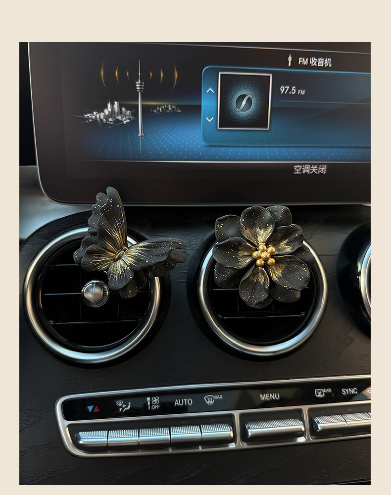高級感黒金蝶ツバキ車載香薫自動車エアコン吹出口装飾拡香石車内アクセサリー