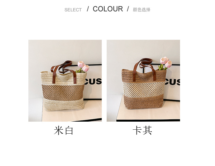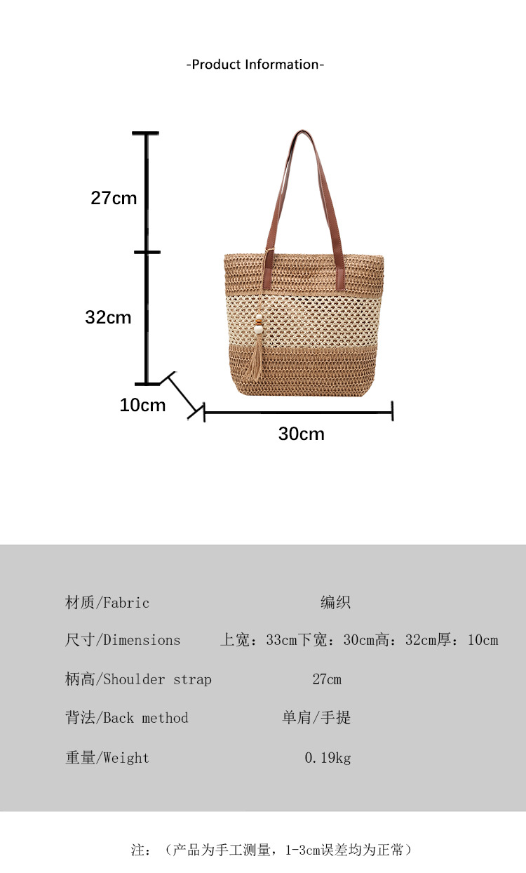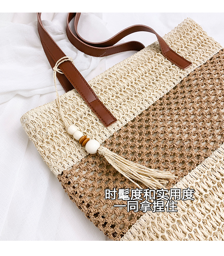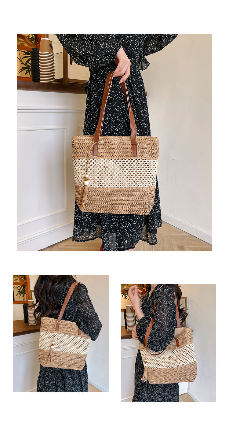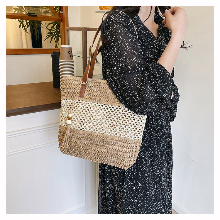 2025 夏の新休暇スタイルビーチコントラストカラーわらバッグファッション中空大容量スプライシングタッセルトートバッグ