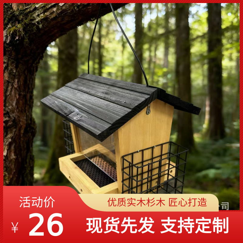 跨境木质悬挂式喂鸟器公园园林鸟类喂食器喂鸟台户外蜂鸟鸟窝鸟屋