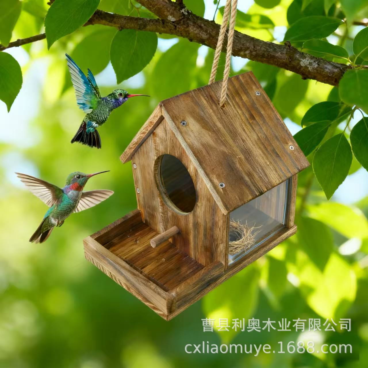 工場一件卸木製鳥の巣クリエイティブ屋外鳥かご実木ハチドリ鳥の巣木製給餌器鳥の家
