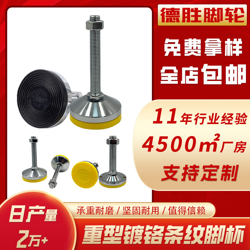 高耐久炭素鋼黄色ゴム足カップ亜鉛メッキサポートフットレベル調整M12M16M20M24機械滑り止めフットパッド