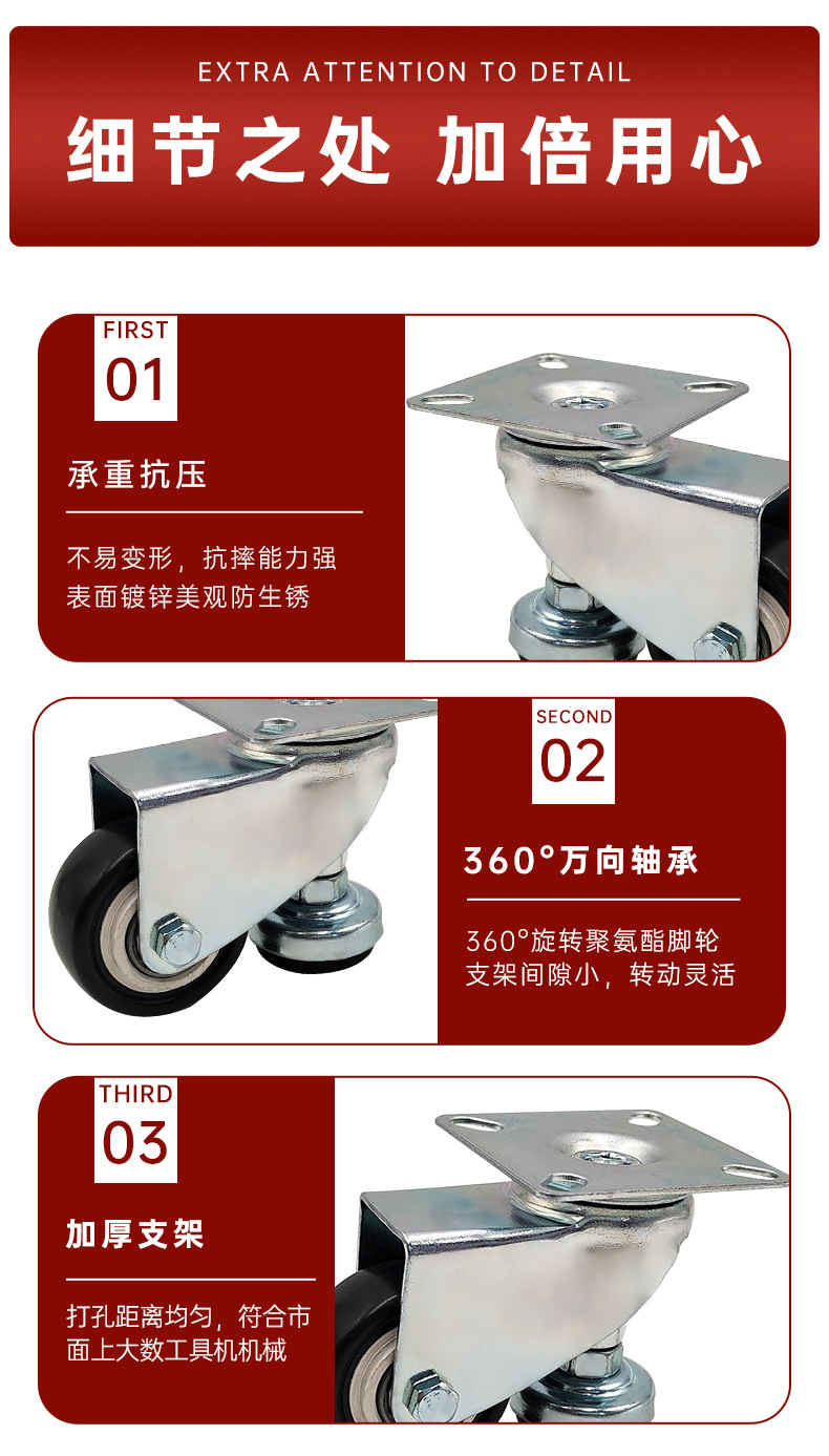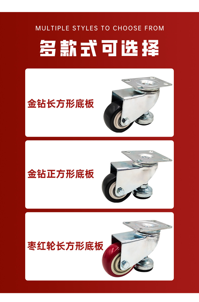 サポートフットカップ付き水平調整キャスター 2.5inch 34inch ゴールドダイヤモンドマルーンホイール機械設備キャビネットユニバーサルホイール