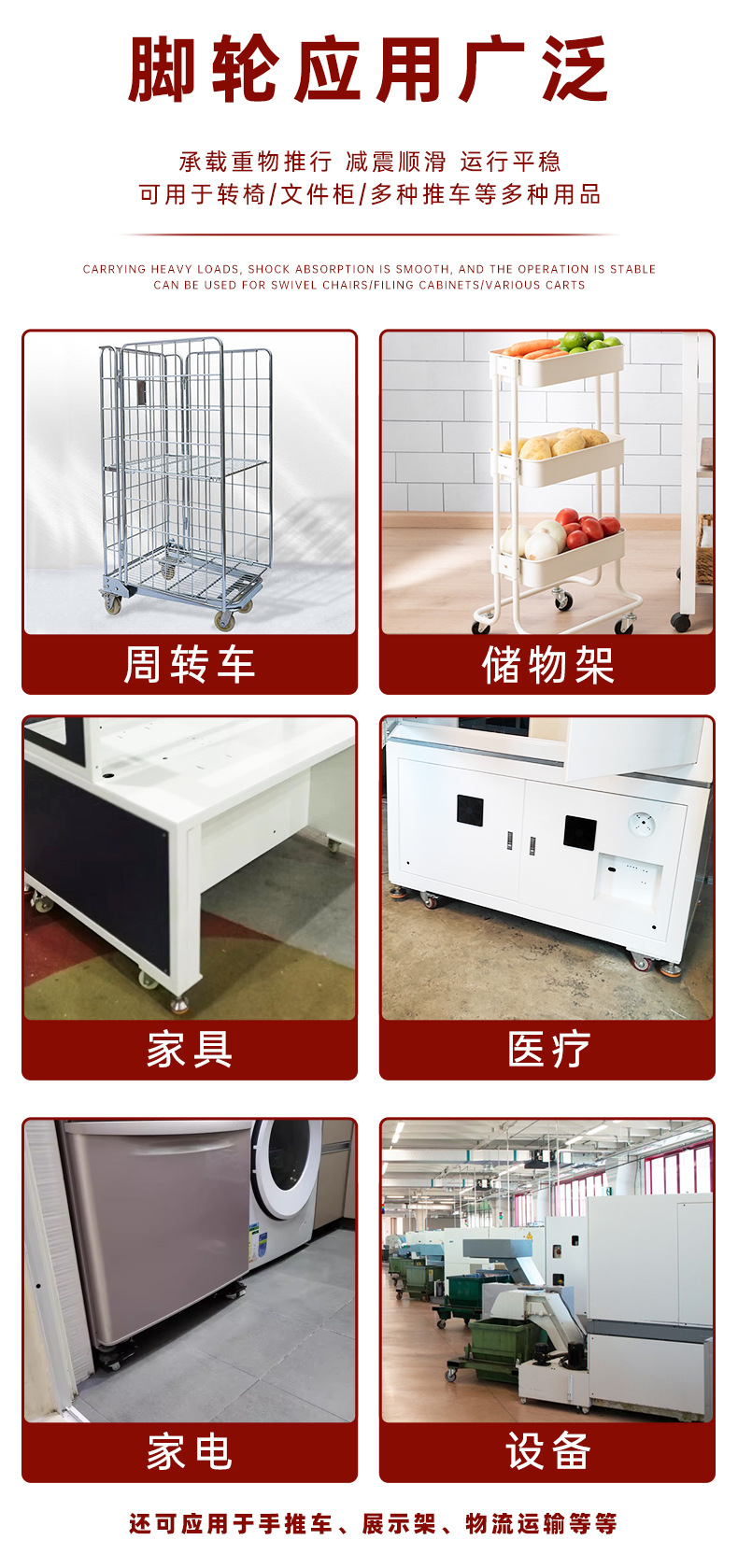 手押し車車輪軸付き3インチTPR静音輪56インチナイロンポリウレタンキャスター大型固定輪