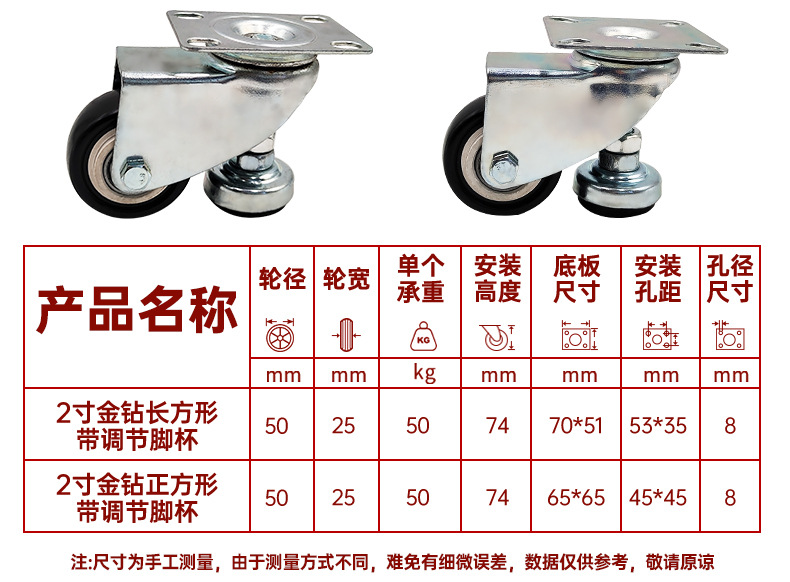 仕様とモデル 2inch ゴールド ダイヤモンド長方形、調整可能なフット カップ穴間隔 (53*35)*1,2inch ゴールド ダイヤモンド スクエア、調整可能なフット カップ穴間隔 (45*45),2.5 ナツメホイール長方形、調整可能なフットカップ穴間隔 (74*45),3inch ナツメホイール長方形、調整可能なフットカップ穴間隔 (74*45),4inch ナツメホイール長方形、調整可能なフットカップ穴間隔 (74*45)