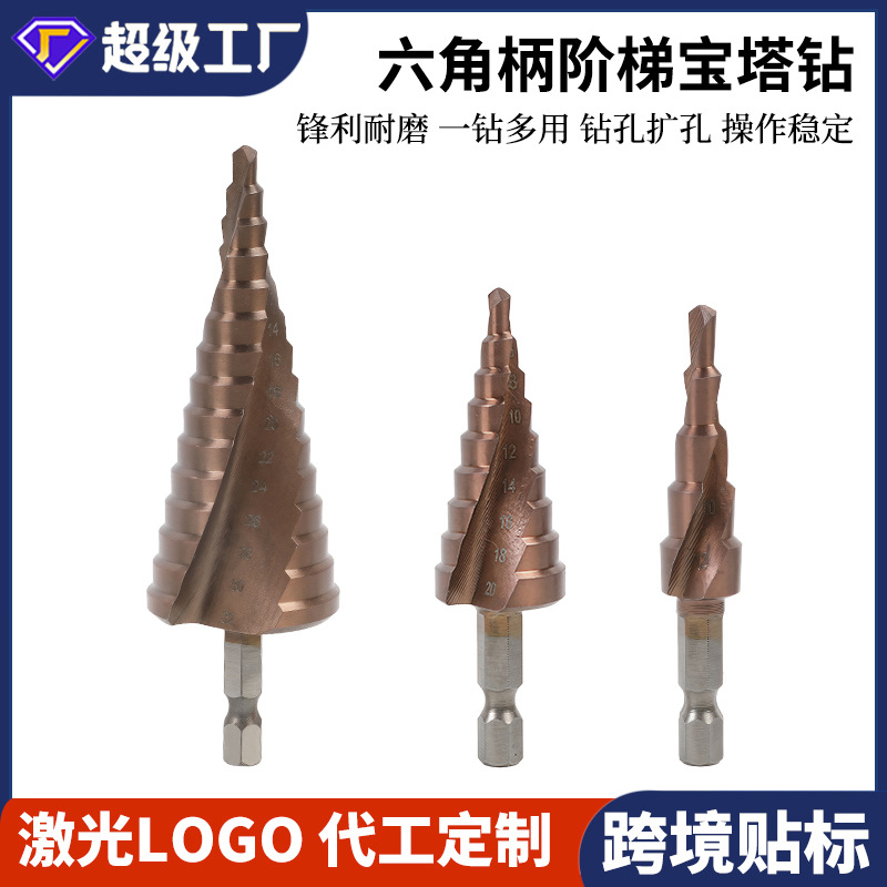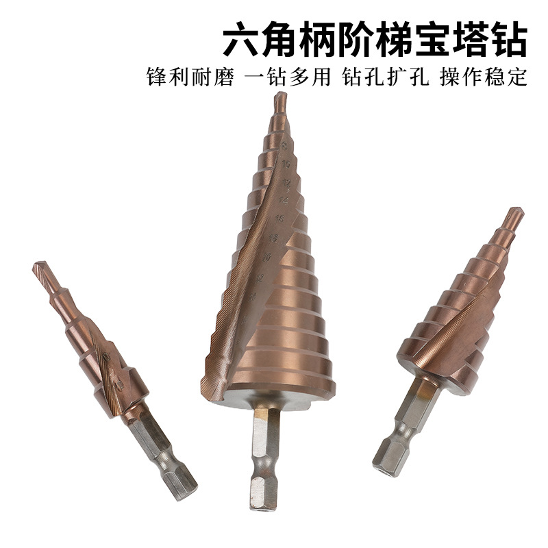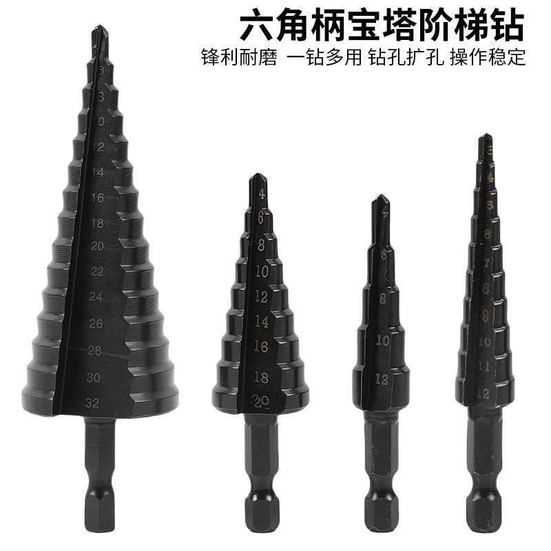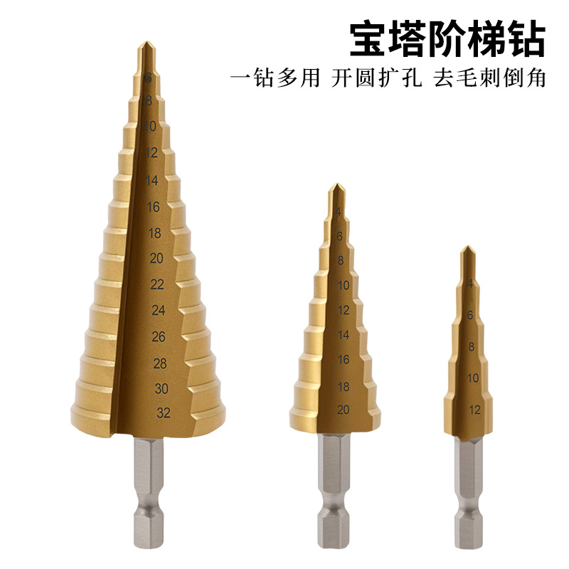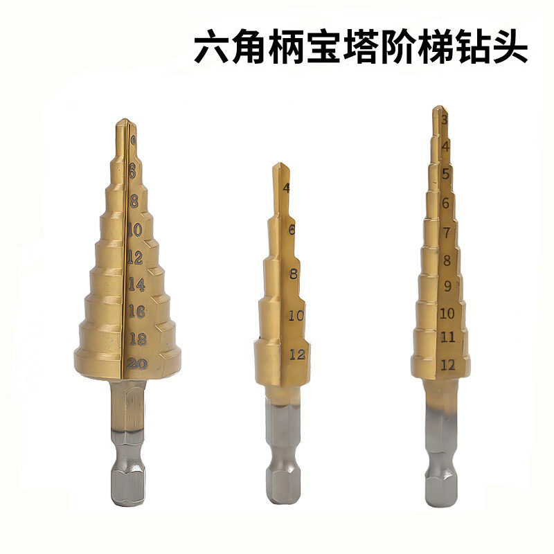 宝塔钻头3件套六角柄直槽公制镀钛打孔扩孔器台阶钻三件套阶梯钻