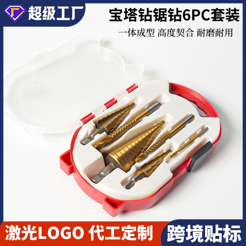 宝塔钻锯齿钻6件套镀钛宝塔钻头木工开孔扩孔拉槽宝塔钻塑盒套装